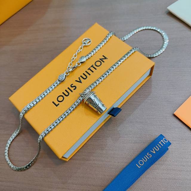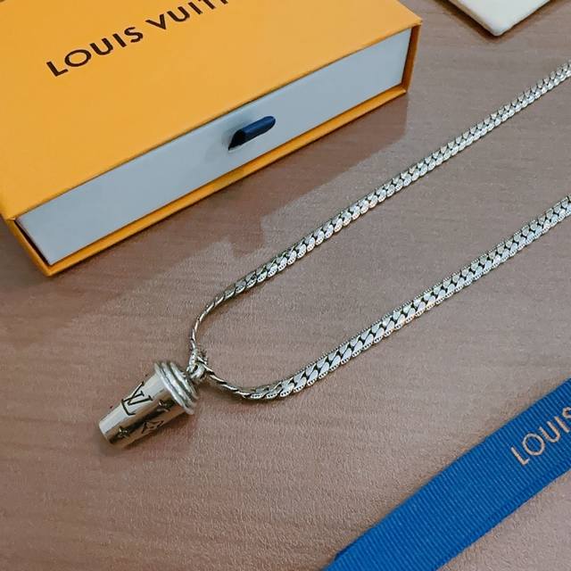 Louis Vuitton (LV) necklace, original single item, new model, retro trendy fashion essential, unisex, couple style, rock punk Thai silver style, retro elements, trendy and versatile, same style as the official website, latest model, higher grade chain, celebrity classic necklace series, retro silver necklace. Chain length 60cm, length can be adjusted. Details match the original, distressed finish, not the shiny version on the market. This is a consistently best-selling LV style, very easy to match with trendy clothes.