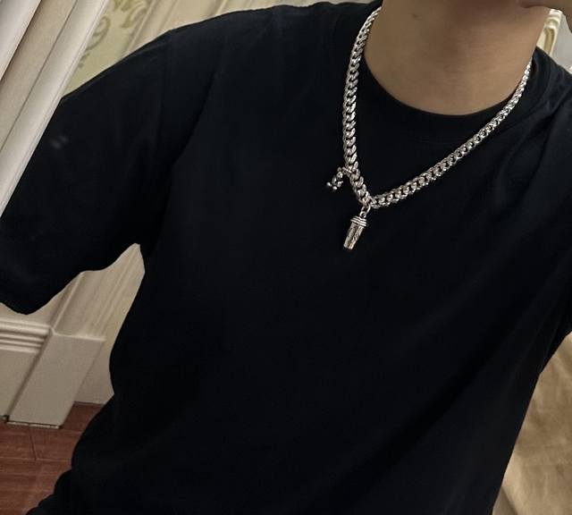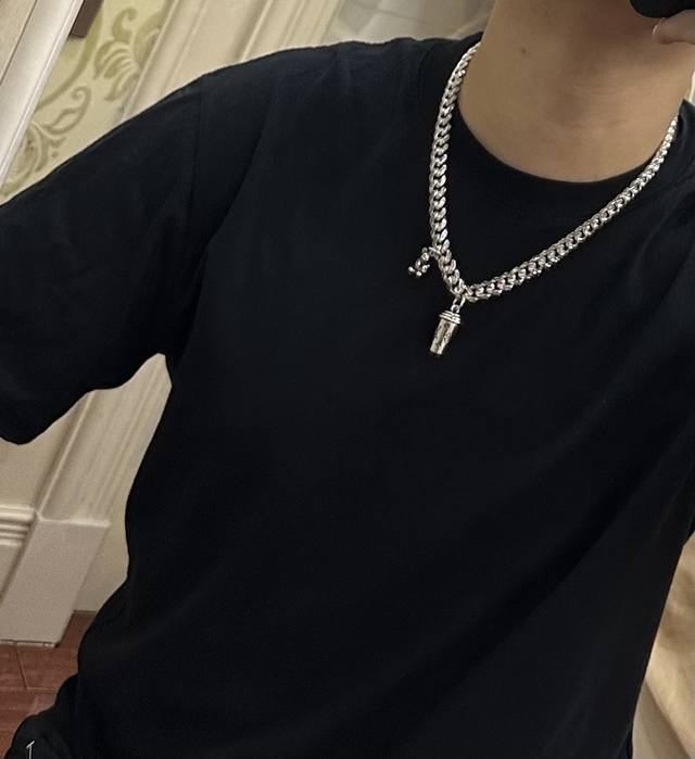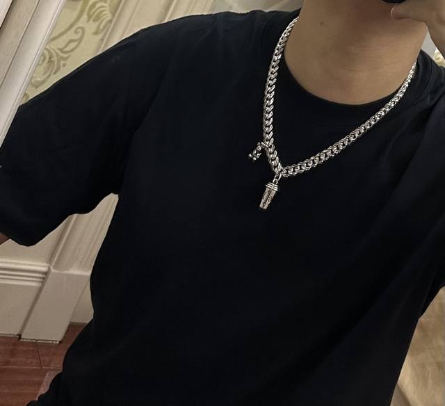 Louis Vuitton (LV) necklace, original single item, new model, retro trendy fashion essential, unisex, couple style, rock punk Thai silver style, retro elements, trendy and versatile, same style as the official website, latest model, higher grade chain, celebrity classic necklace series, retro silver necklace. Chain length 60cm, length can be adjusted. Details match the original, distressed finish, not the shiny version on the market. This is a consistently best-selling LV style that goes very well with trendy clothes.
