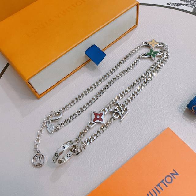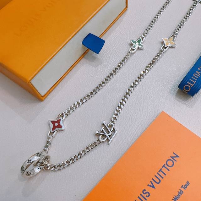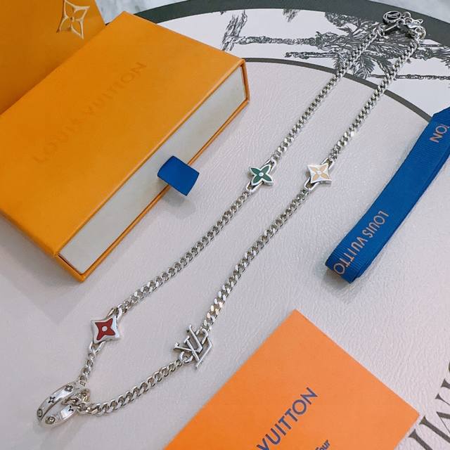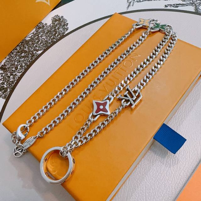 Louis Vuitton (LV) necklace, original single item, new model, retro trendy fashion essential, unisex, couple style, rock punk Thai silver style, retro elements, trendy and versatile, same style as the official website, latest model, higher grade chain, celebrity classic necklace series, retro silver necklace. Chain length 60cm, length can be adjusted. Details match the original, distressed finish, not the shiny version on the market. This is a consistently best-selling LV style and goes very well with trendy clothes.
