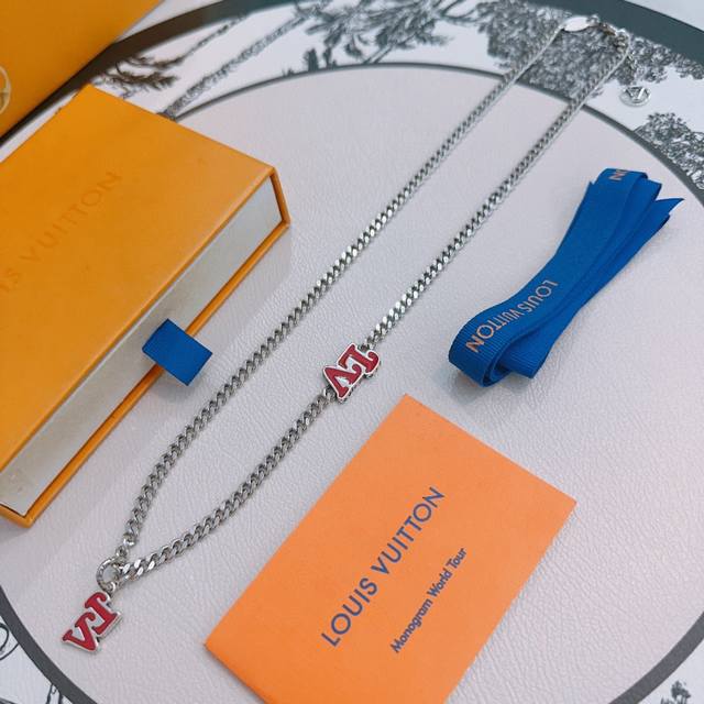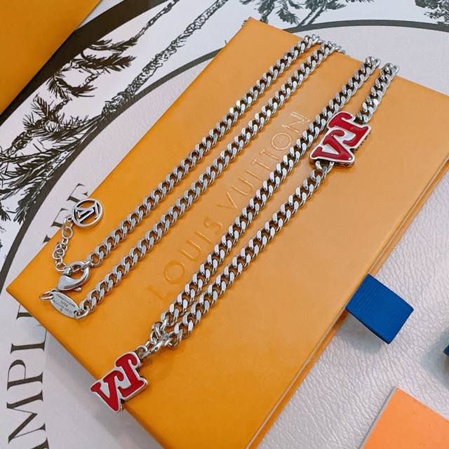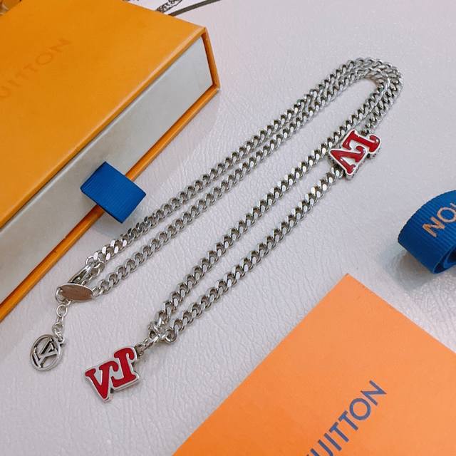 Louis Vuitton (LV) necklace, original single item, new model, retro trendy fashion essential, unisex, couple style, rock punk Thai silver style, retro elements, trendy and versatile, same style as the official website, latest model, higher grade chain, celebrity classic necklace series, retro silver necklace. Chain length 60cm, length can be adjusted. Details match the original, distressed finish, not the shiny version on the market. This is a consistently best-selling LV style that goes very well with trendy clothes.