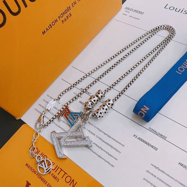Louis Vuitton LV necklace, original single item, new model, retro trendy fashion must-have, unisex, couple style, rock punk Thai silver style, retro elements, trendy and versatile, same style as the official website, latest model, higher grade chain, celebrity classic necklace series, retro silver necklace. Chain length 60cm, length can be adjusted. Details match the original, distressed finish, not the shiny version on the market. This is a consistently best-selling LV style and goes very well with trendy clothes.
