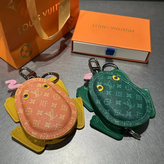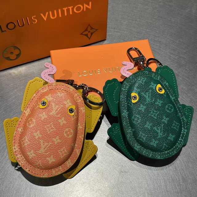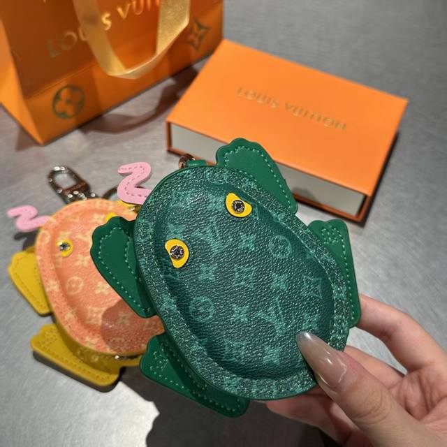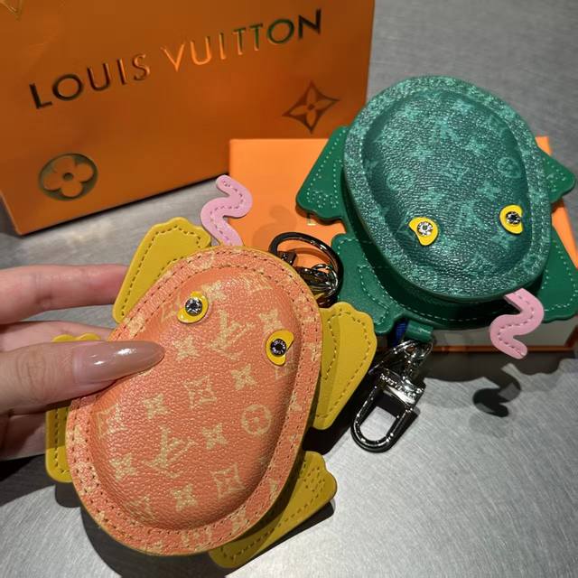 Louis Vuitton monogram, canvas, gold keychain, men's orange. 2025Ss new frog charm, coin purse, headphone case, car key holder, LV Frog bag accessory - official website item number: M02238 - retail price: 30,350 RMB. The LV Frog bag accessory features contrasting Monogram elements and inscribed metal hardware, creating a vibrant and stylish gift for brand fans. It can also be transformed into a headphone case. Canvas, metal hardware, Louis Vuitton elements, spring buckle closure, made in Italy!