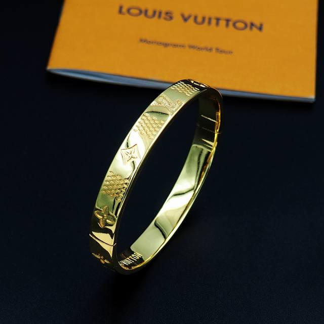 Louis Vuitton's Damier Staples bracelet meticulously presents the Damier Heritage pattern, then incorporates the Monogram design with striking brushstrokes, subtly revealing Creative Director Pharrell Wiliams's new season ingenuity. (
