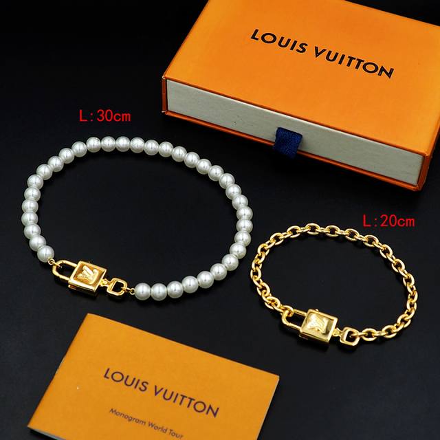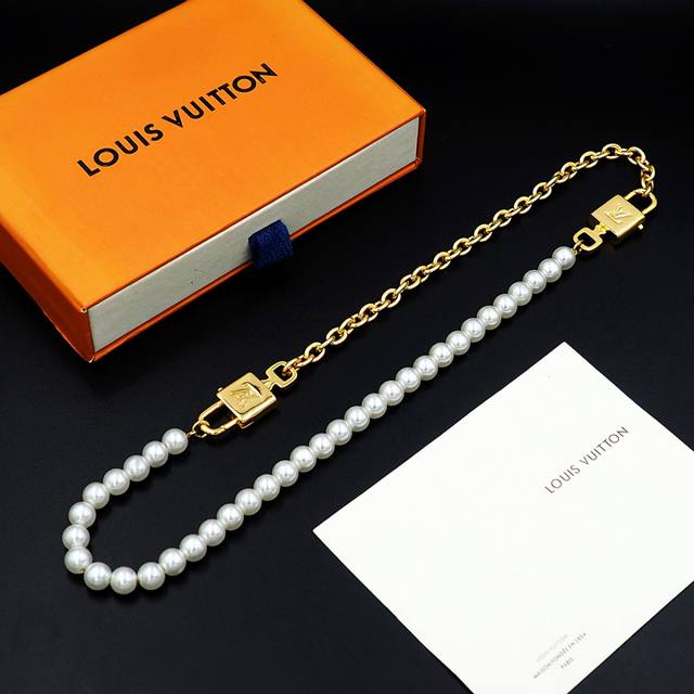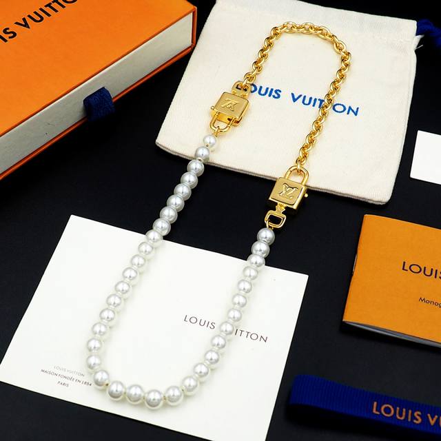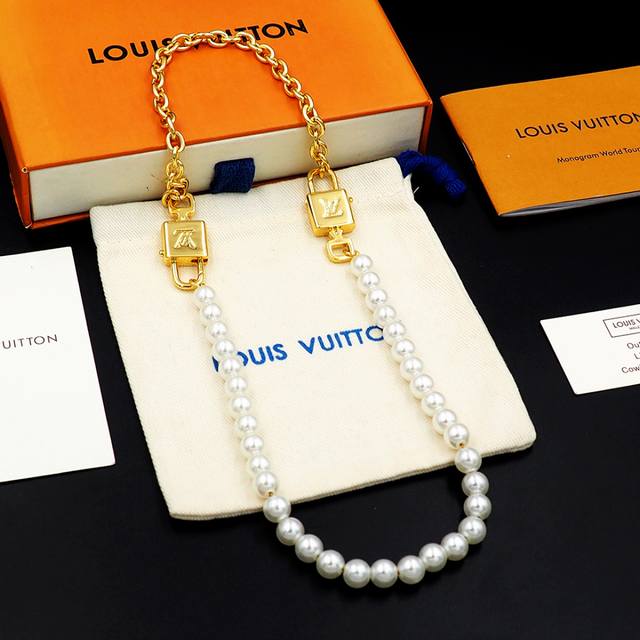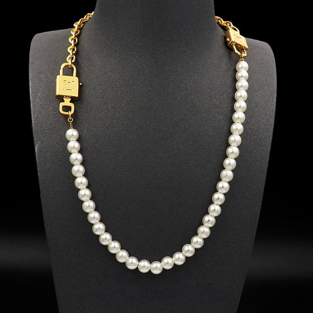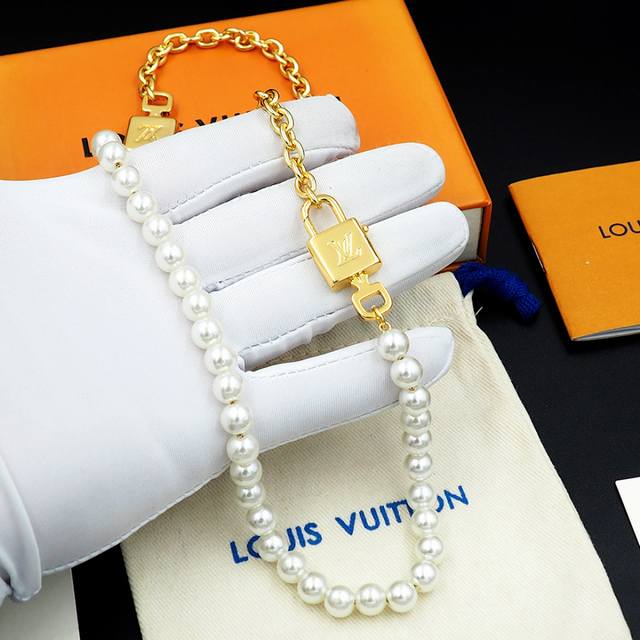 Louis Vuitton's Pearlock necklace cleverly interprets color-blocking fashion, connecting a dazzling metal chain and elegant resin beads with an LV padlock. It can be worn as a necklace or separated into a bracelet.