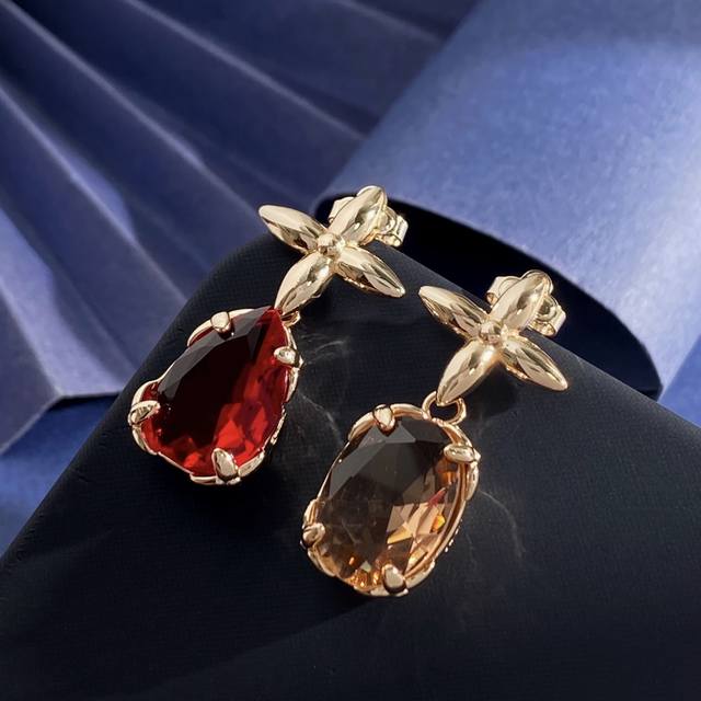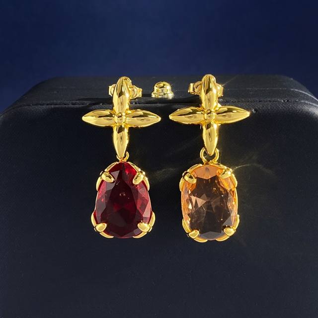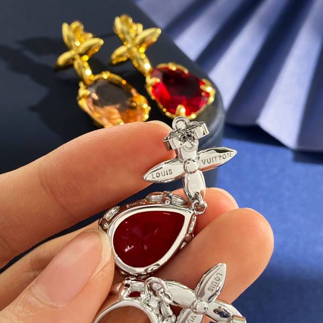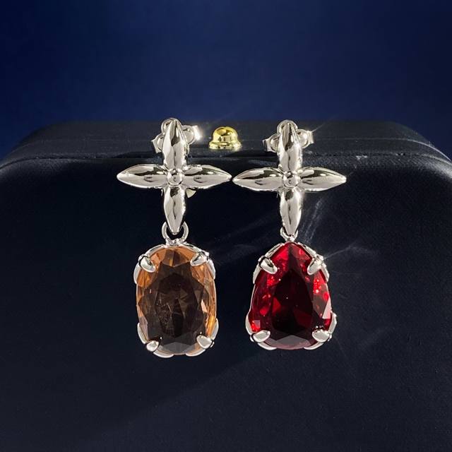 Lv Louis Vuitton European and American high-end presbyopic polished diamond cross flower pendant zircon large gem style oval teardrop diamond Ab with earrings brass material gold, silver and rose 3 colors weight about 13.7G total height about 3.8Cm