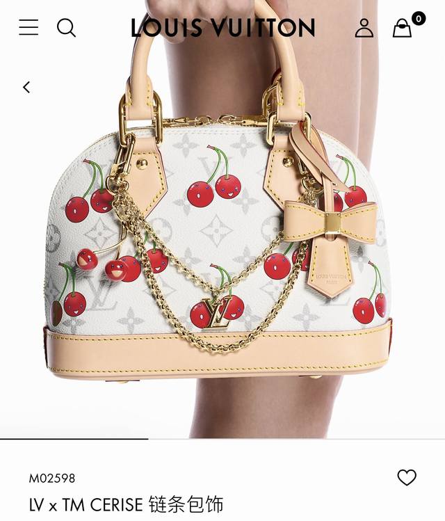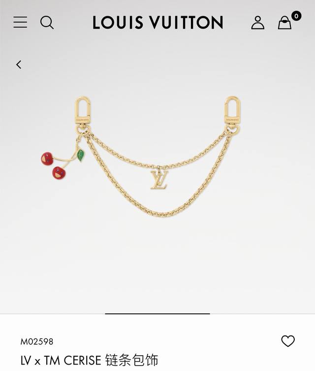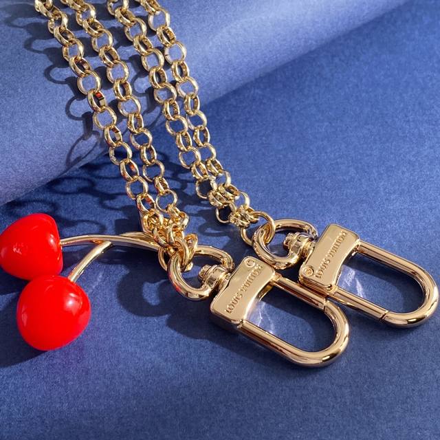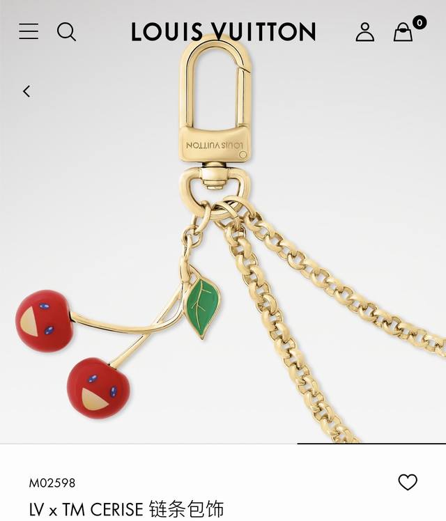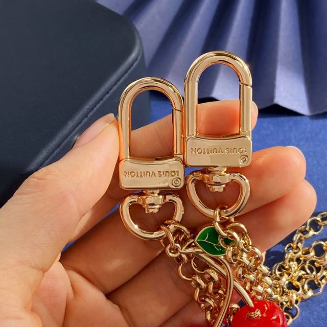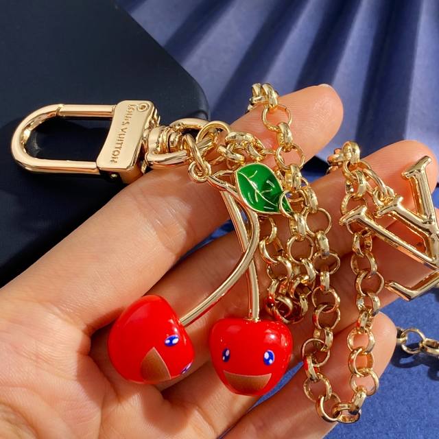 Lv Louis Vuitton Murakami Takashi series European and American style high-end Lv letters and playful and cute green leaves and cherry decorations double chain keychain bag pendant bag decoration brass material weighs approximately 57.2G total chain length is approximately 37cm