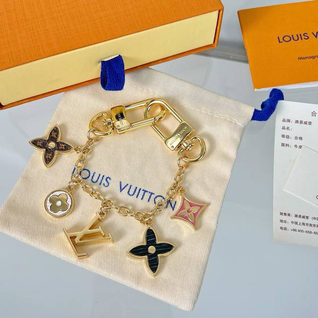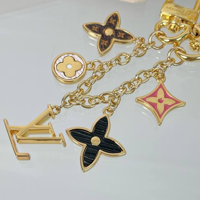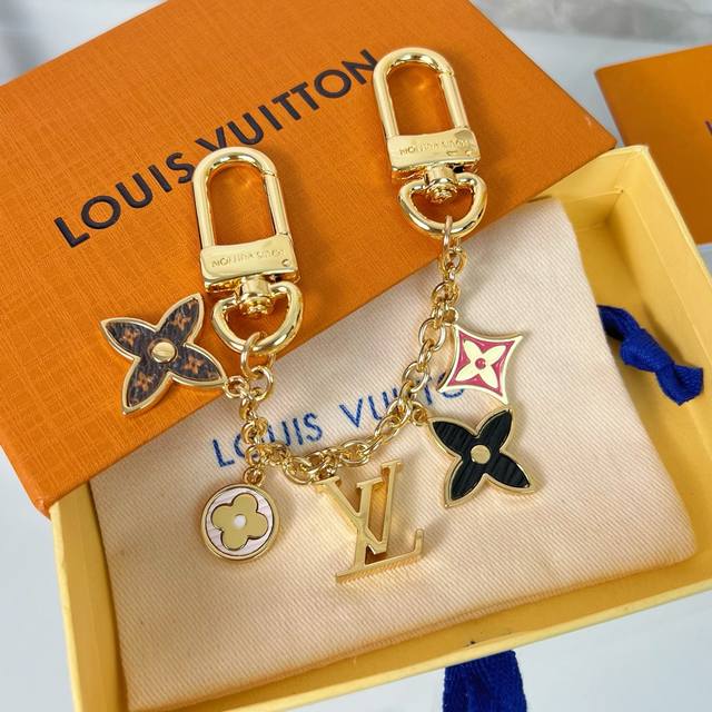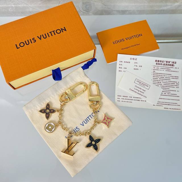 M01188 S-batch Ring Street Chain bag charm transforms classic elements such as Monogram flowers and the LV monogram into miniature charms, exuding a soft and feminine charm through its elegant colors and Monogram canvas embellishments. The mixed materials and shapes capture the eye, while the Louis Vuitton logo inscription adds rich detail.