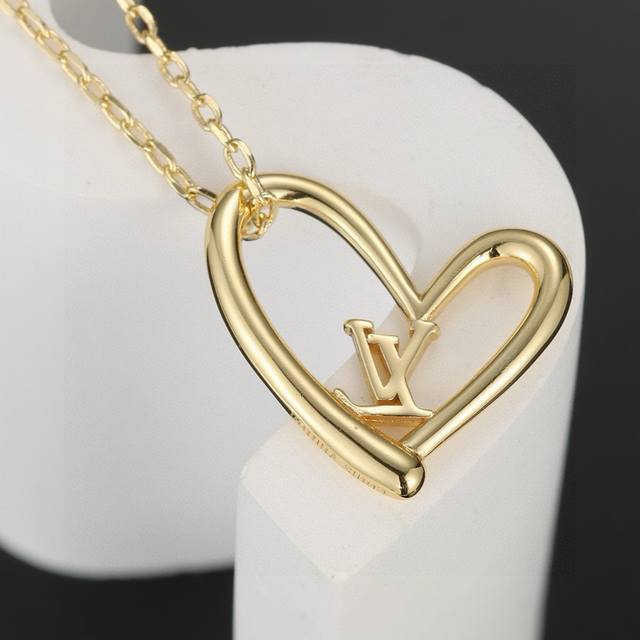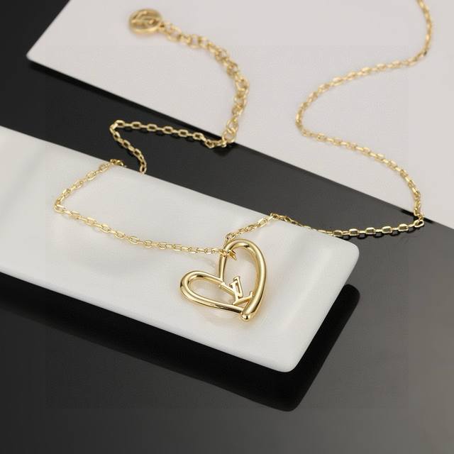 LV Heart Peach Necklace, Louis Vuitton Autumn/Winter New Arrival Necklace, Electroplated 18K Gold, 1:1 Replica from Official Stores, Superb Quality, Exquisite Inlay Technique. Looks beautiful on, especially suitable for winter pairing with sweaters, understated luxury with sophistication.