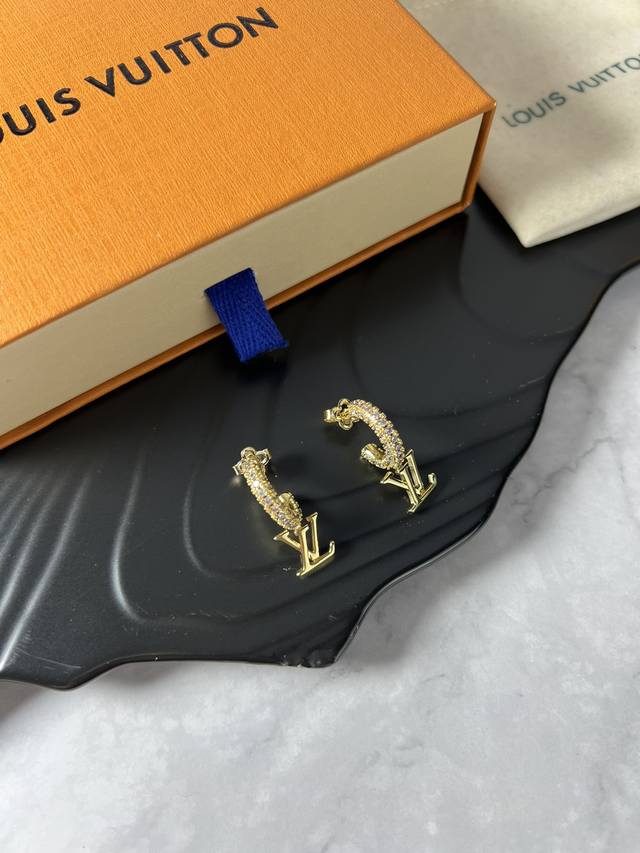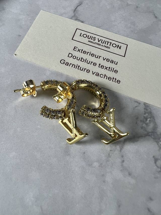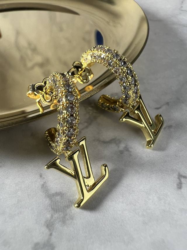 Lv Iconic earrings offer a sophisticated reinterpretation of the brand's classic elements. The Lv logo is adorned on a magnificent metal hoop, embellished with sparkling crystals. Their lightweight and comfortable design adds a touch of glamour to any outfit. DDD
