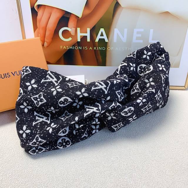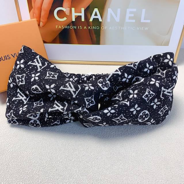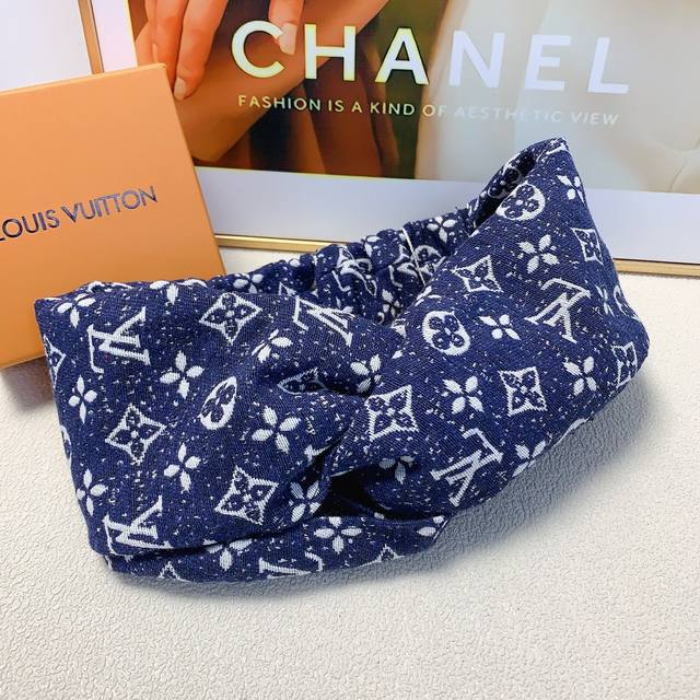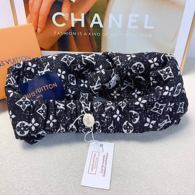 Lv Louis Vuitton DDD Louis Vuitton headband DDD New embroidered logo headband European and American fashion headband tie headband versatile, stylish, understated luxury single headband box DDD