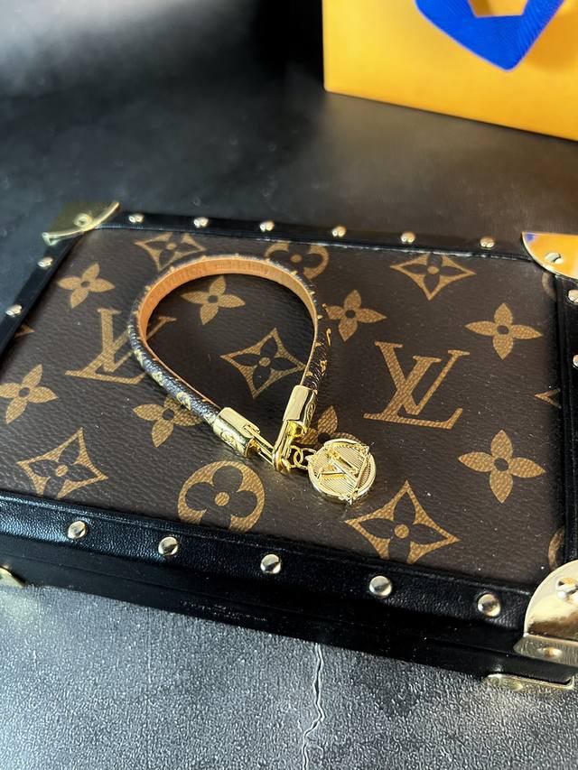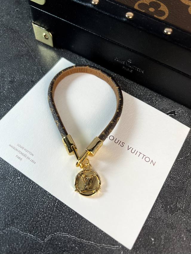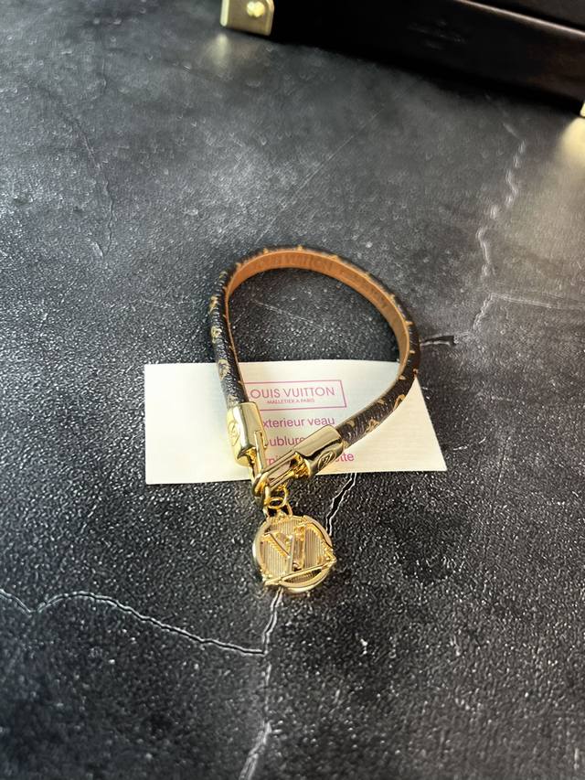 / Lv shield leather bracelet, brass material counter same style DDD