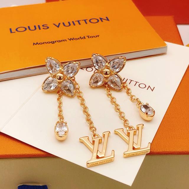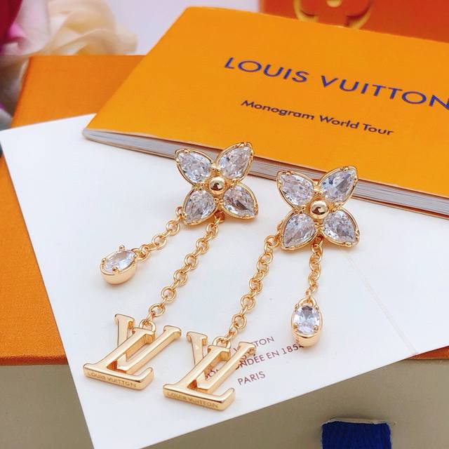 Model No. Led0260 Lv* Latest Rose Gold Plum Blossom Teardrop Fringe Ear Studs, Consistent Z-Batch Brass Material