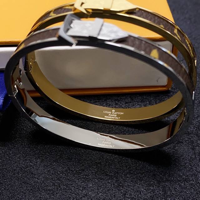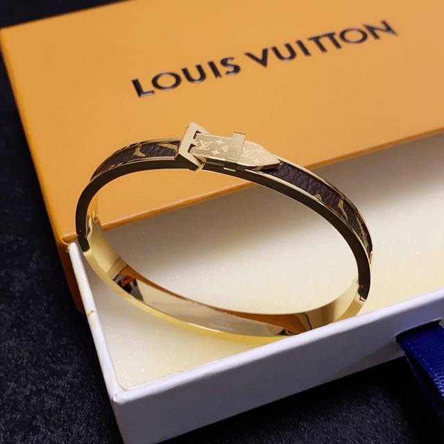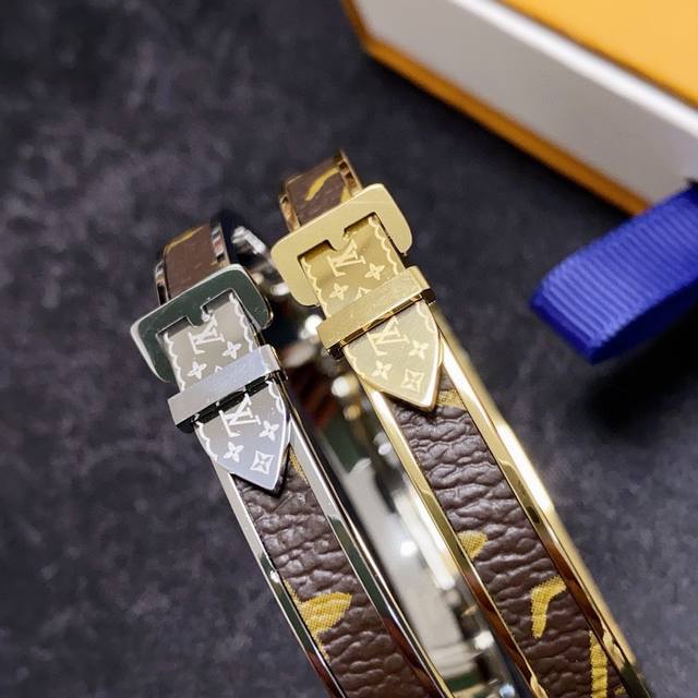 New Arrival Original LV Unisex Leather Printed Buckle Bangle. Made with the same materials as Louis Vuitton boutiques, this popular style features a unique, retro-chic design. The 14K gold finish has been a favorite among women since its release, with each color possessing its own unique brilliance! It looks stunning on the wrist! The smallest and most elegant design! More flattering and brightens the complexion than the standard version.
