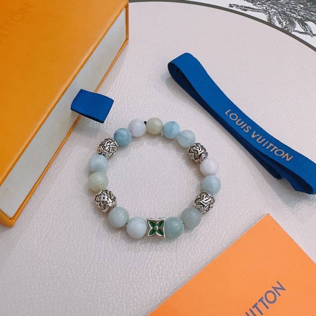 New counter Seiko version LV Louis Vuitton multi-element agate Thai silver style bracelet G-Dragon celebrity same retro old style original replica pure handmade ~ authentic mold trendy fashion must-have for men and women can be worn by couples of the same style rock punk Thai silver style retro elements trendy all-match official website same
