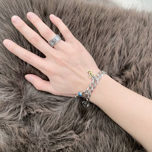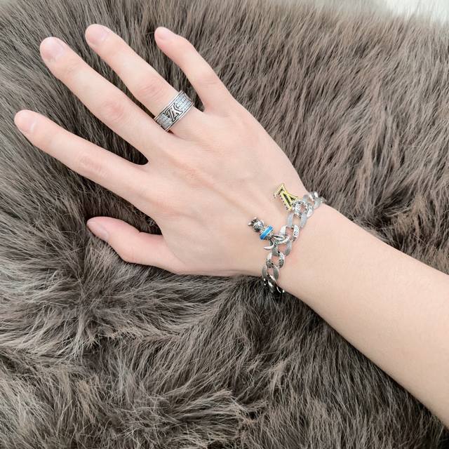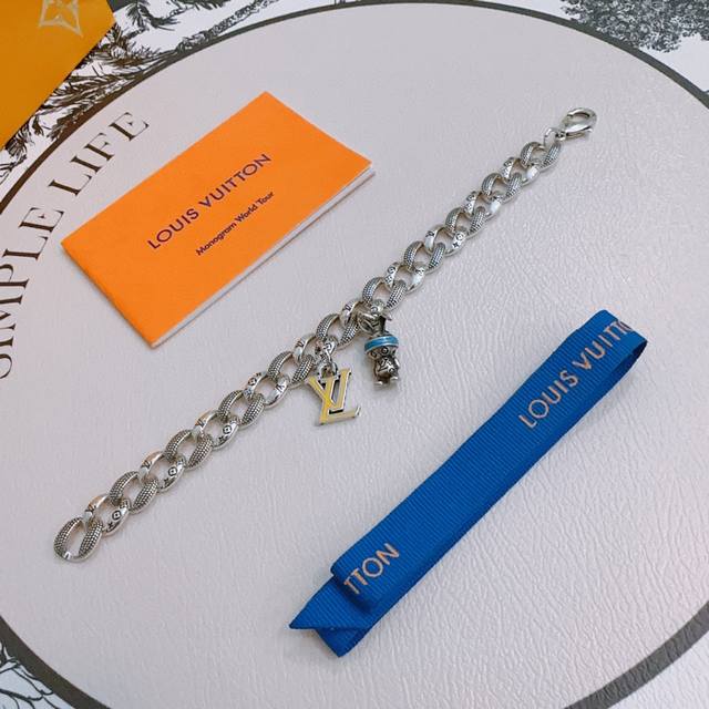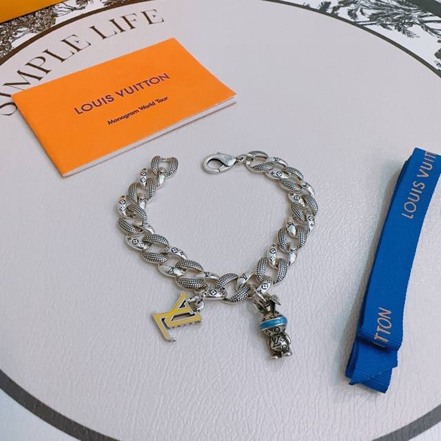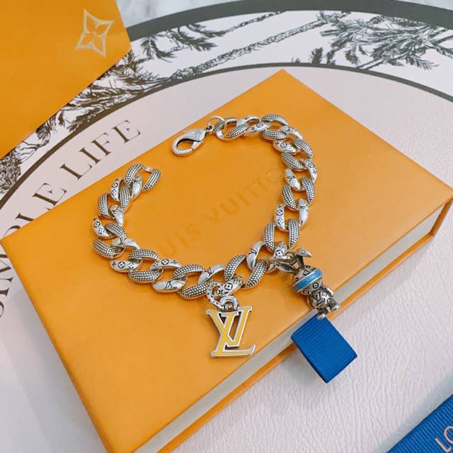 New Franc, high-quality Louis Vuitton Lv bracelet, original goods, new counter mold, retro fashion, must-have for men and women, suitable for couples, rock punk Thai silver style, retro elements, trendy and versatile, same necklace as the official website, the latest chain, higher grade, classic celebrity bracelet, Cuban chain series, retro silver bracelet