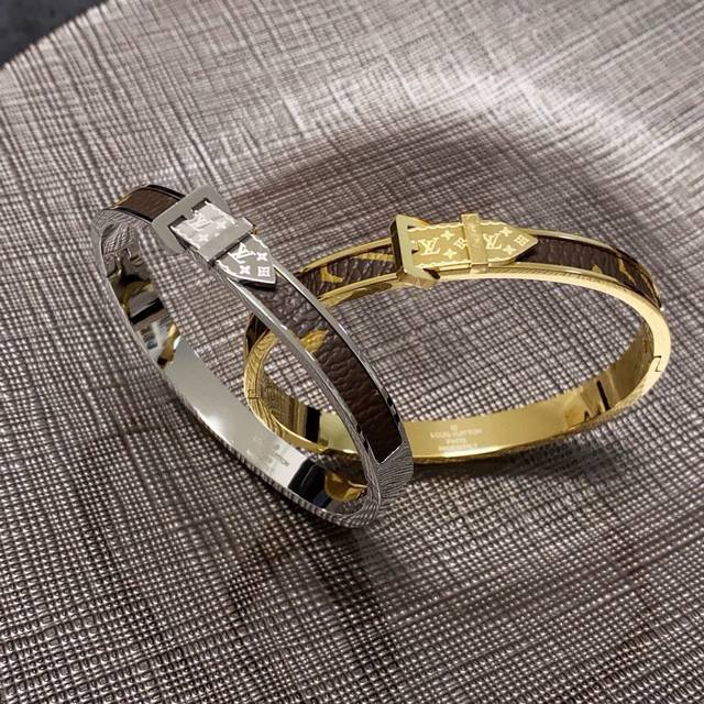 New, original, Lv, unisex leather printed belt buckle bracelet. Made from the same materials as Louis Vuitton counters, this popular model is a unique, retro, and avant-garde design. This 14K, precision-crafted, color-preserving bracelet has been a favorite since its launch. Each color has its own unique brilliance! It looks amazing! The smallest model! It's more durable than the regular model and flatters the skin tone.