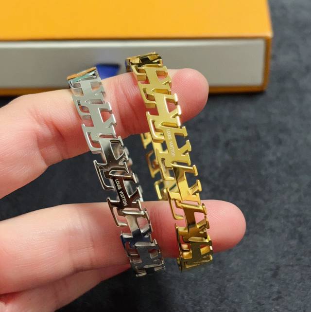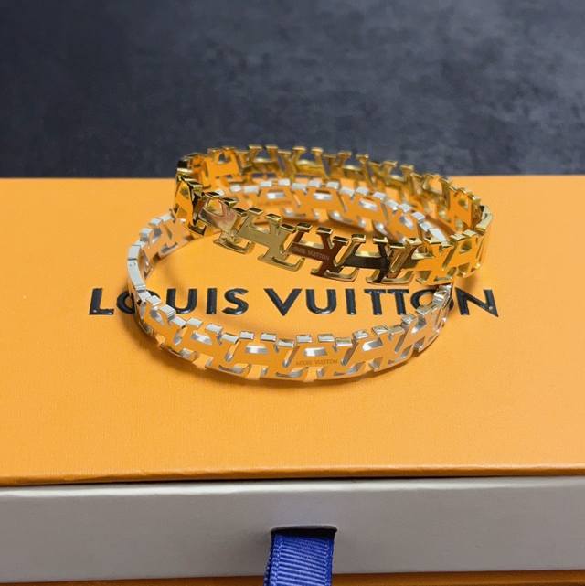 New, original, Lv-printed, engraved, logo-embellished, hollowed-out bracelet. Made from the same materials as the Louis Vuitton counter, this popular model is a unique, retro, and avant-garde design. This 14K, precision-crafted, color-preserving bracelet has been a firm favorite since its launch. Each color has its own unique brilliance! It looks amazing! The smallest model! It's more durable than the regular model and flatters the skin tone.