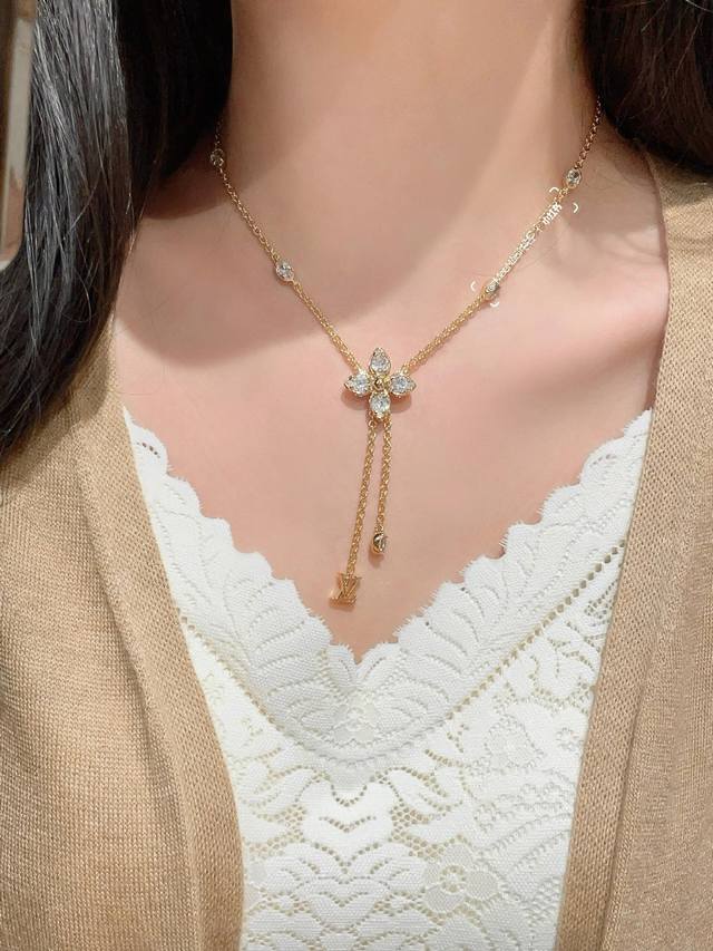 Lv* Latest model plum blossom diamond tassel necklace consistent Zp brass material
