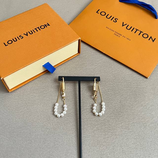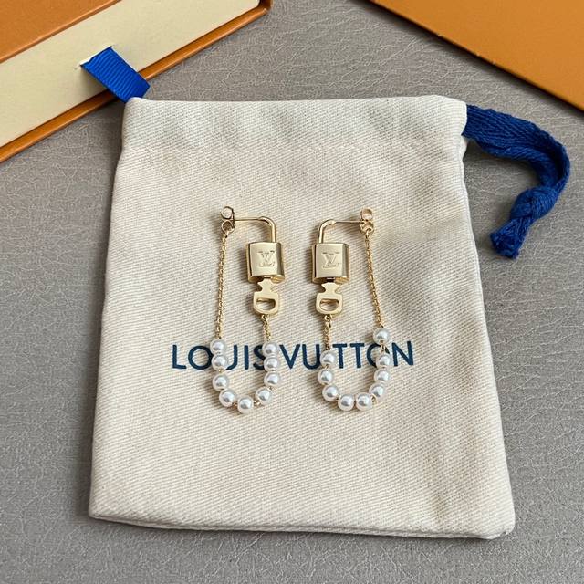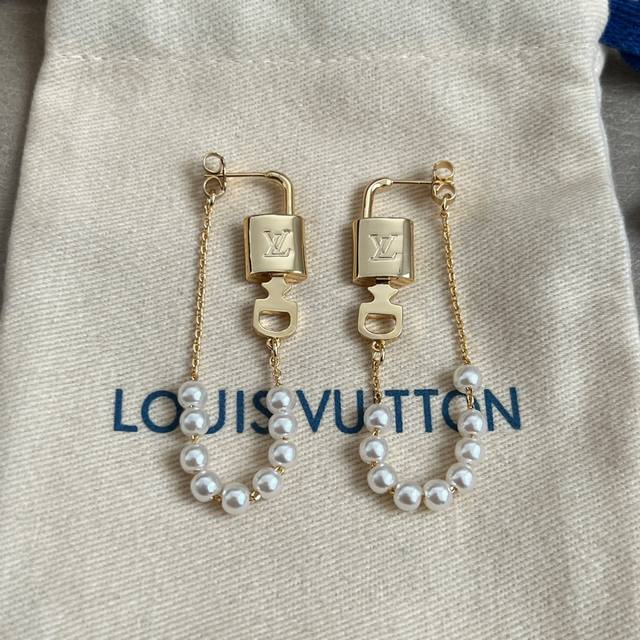 Original Louis Vuitton earrings, made with the same materials as those in boutiques, a popular style with a unique retro and avant-garde design. (