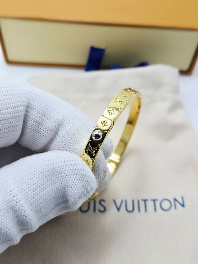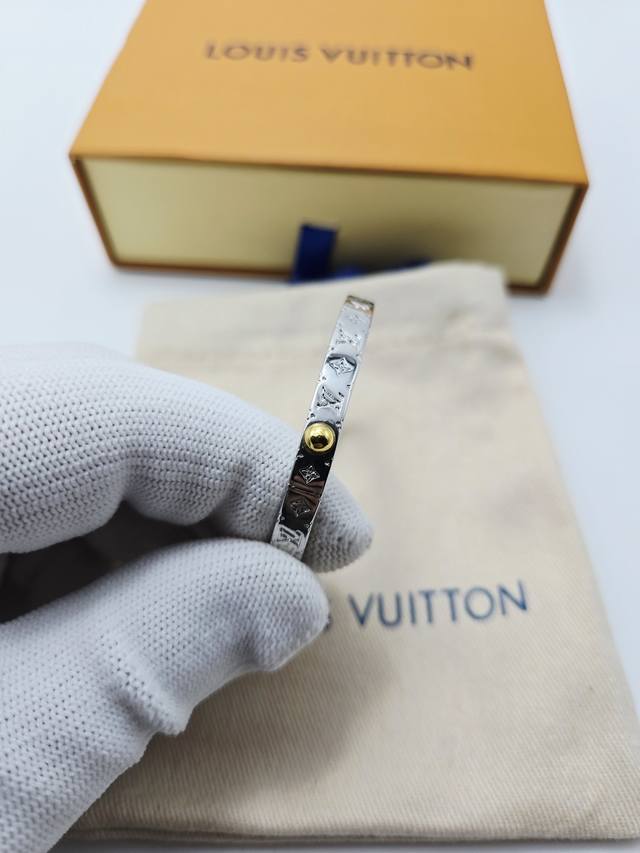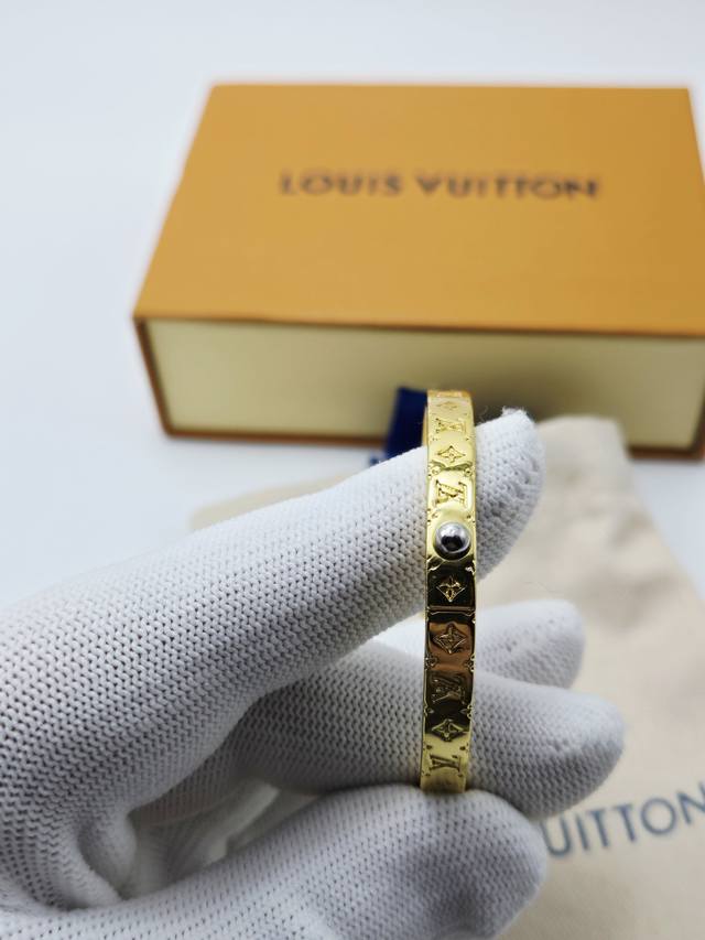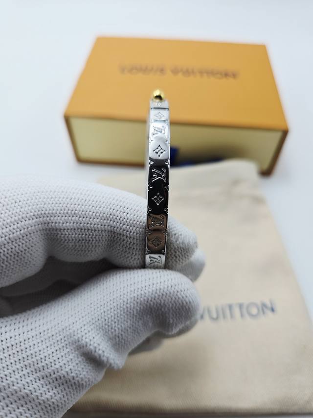 The Louis Vuitton Vers bracelet showcases Pharrell Williams's fresh take on the brand's logo, incorporating the Louis Vuitton logo and Monogram floral enamel into the shimmering ring, making it a classic choice for Louis Vuitton fans.