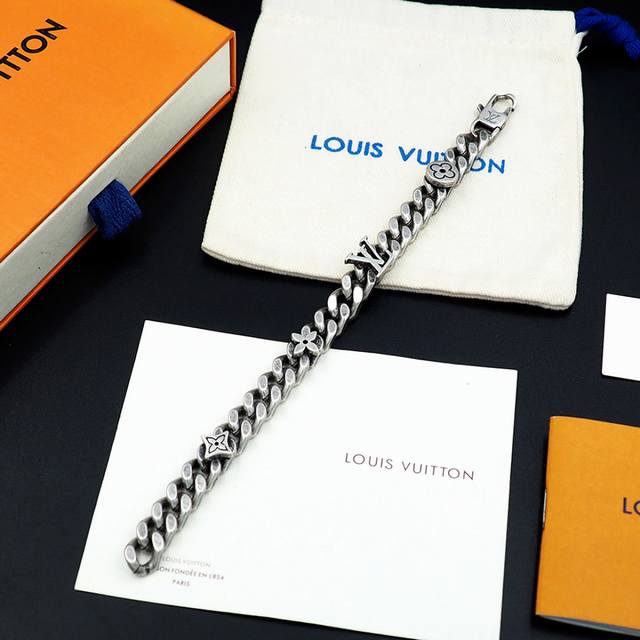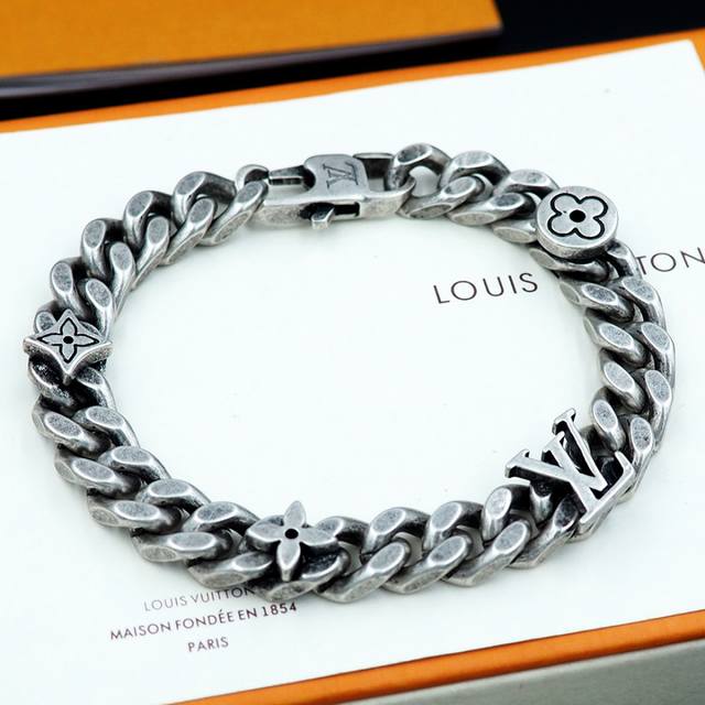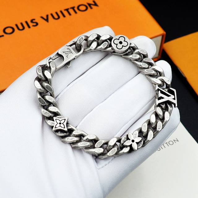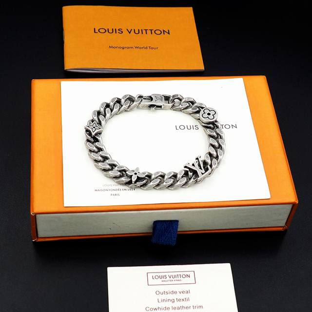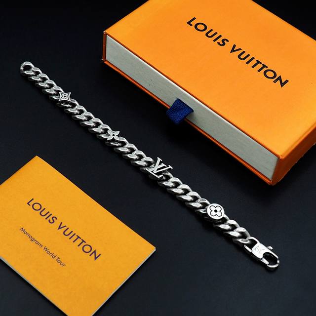 The Lvcity Links Thin bracelet embodies a blend of opulence and modern creativity, imbuing the meticulously crafted Monogram flower with a deep luster and adding a striking visual impact to the smooth links. The hook clasp, inspired by the brand's trunk-making, offers flexible wear to suit any style.