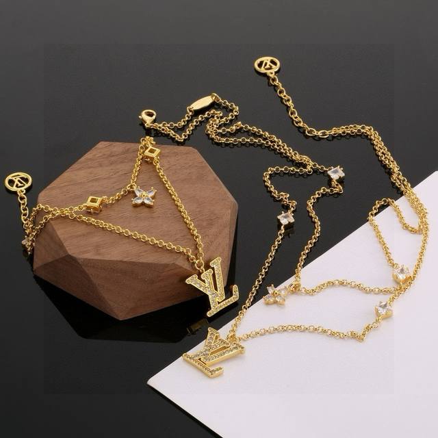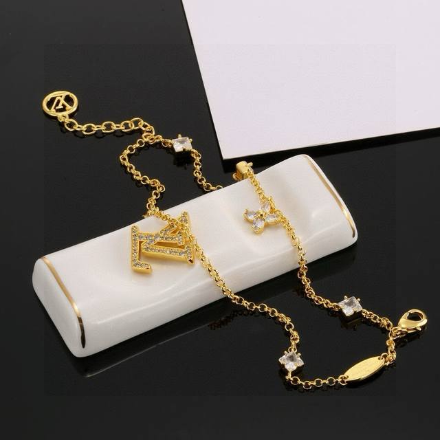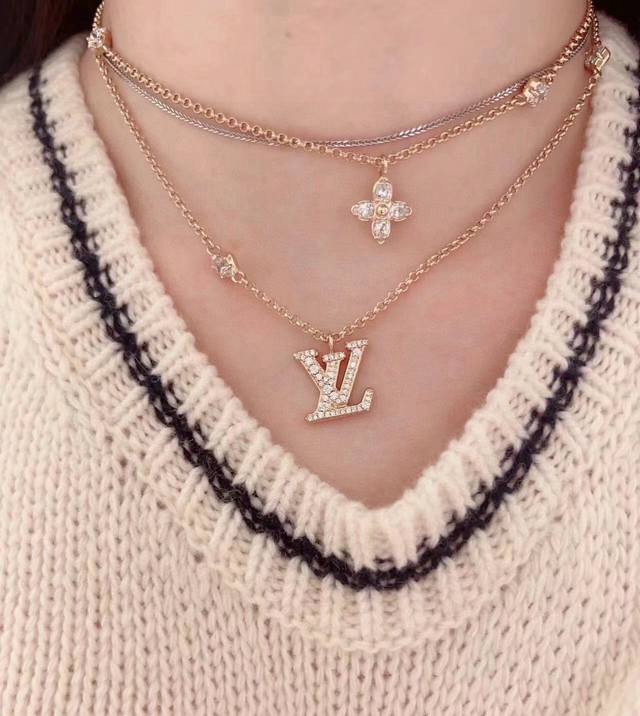 The new Louis Vuitton Iconic necklace and bracelet features a crystal-encrusted LV lettering at the center, infused with elegant Monogram flowers. Whether worn alone or paired with a matching bracelet, it exudes a feminine charm. Necklace/Bracelet (