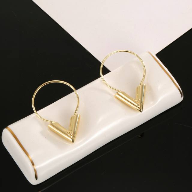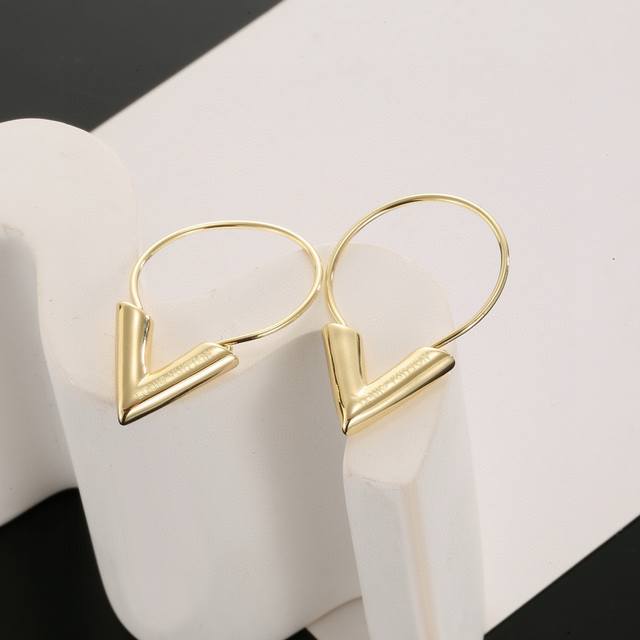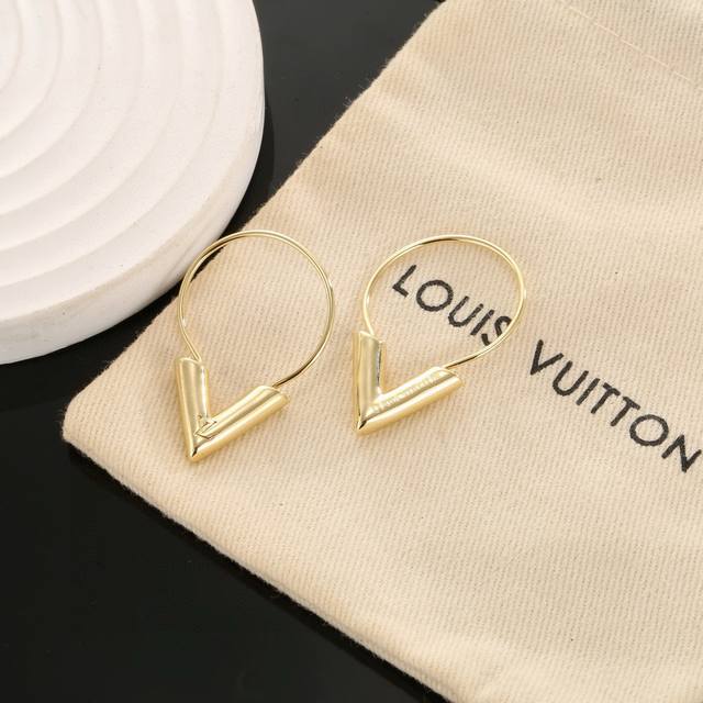 These exquisitely crafted Louis Vuitton earrings embody superb craftsmanship, using a forged, dazzling Lv Twig polish to achieve a natural embodiment of the classic Lv lettering, exuding the brand's style. A classic and versatile style worn by celebrities.