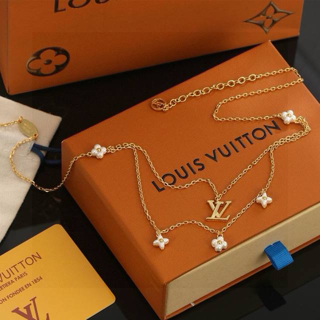 This exquisitely crafted Louis Vuitton letter necklace, crafted with exquisite craftsmanship and polished to a brilliant finish, is a natural embodiment of the classic Lv letter, exuding the brand's signature style. This classic, versatile necklace is also worn by celebrities.