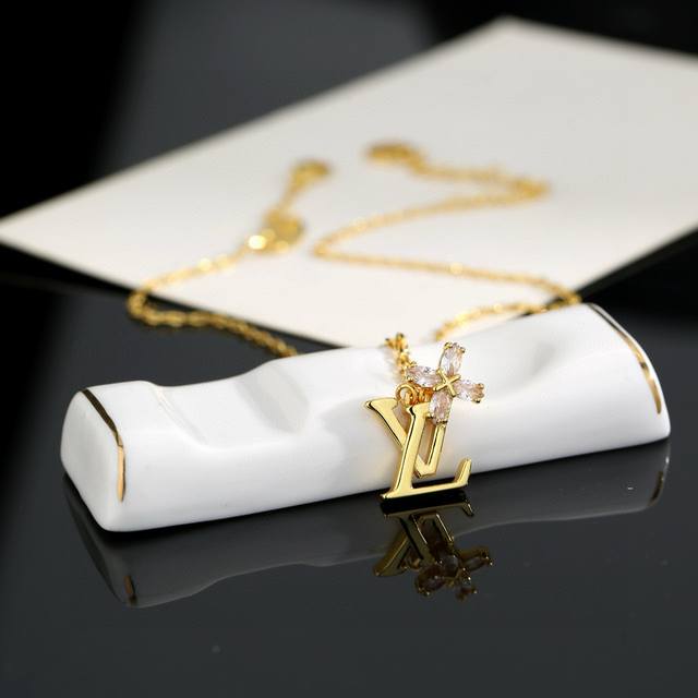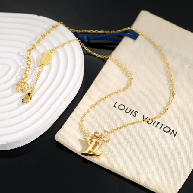 This exquisitely crafted Louis Vuitton letter necklace, crafted with exquisite craftsmanship and polished to a brilliant finish, is a natural embodiment of the classic Lv letter, exuding the brand's signature style. This classic, versatile necklace is also worn by celebrities.