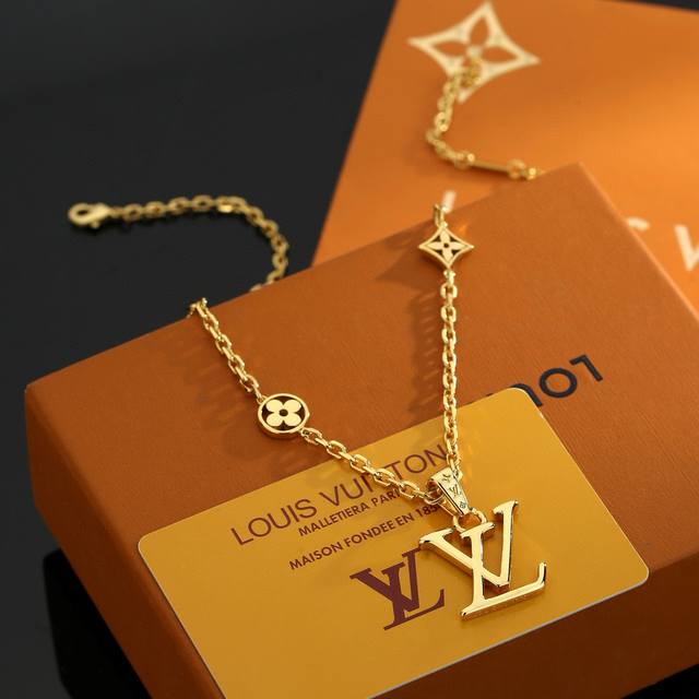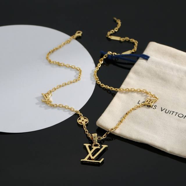 This exquisitely crafted Louis Vuitton necklace embodies superb craftsmanship, using the polished finish of the LV Twig necklace to naturally embody the classic LV lettering, exuding the brand's style. A classic and versatile necklace worn by celebrities.