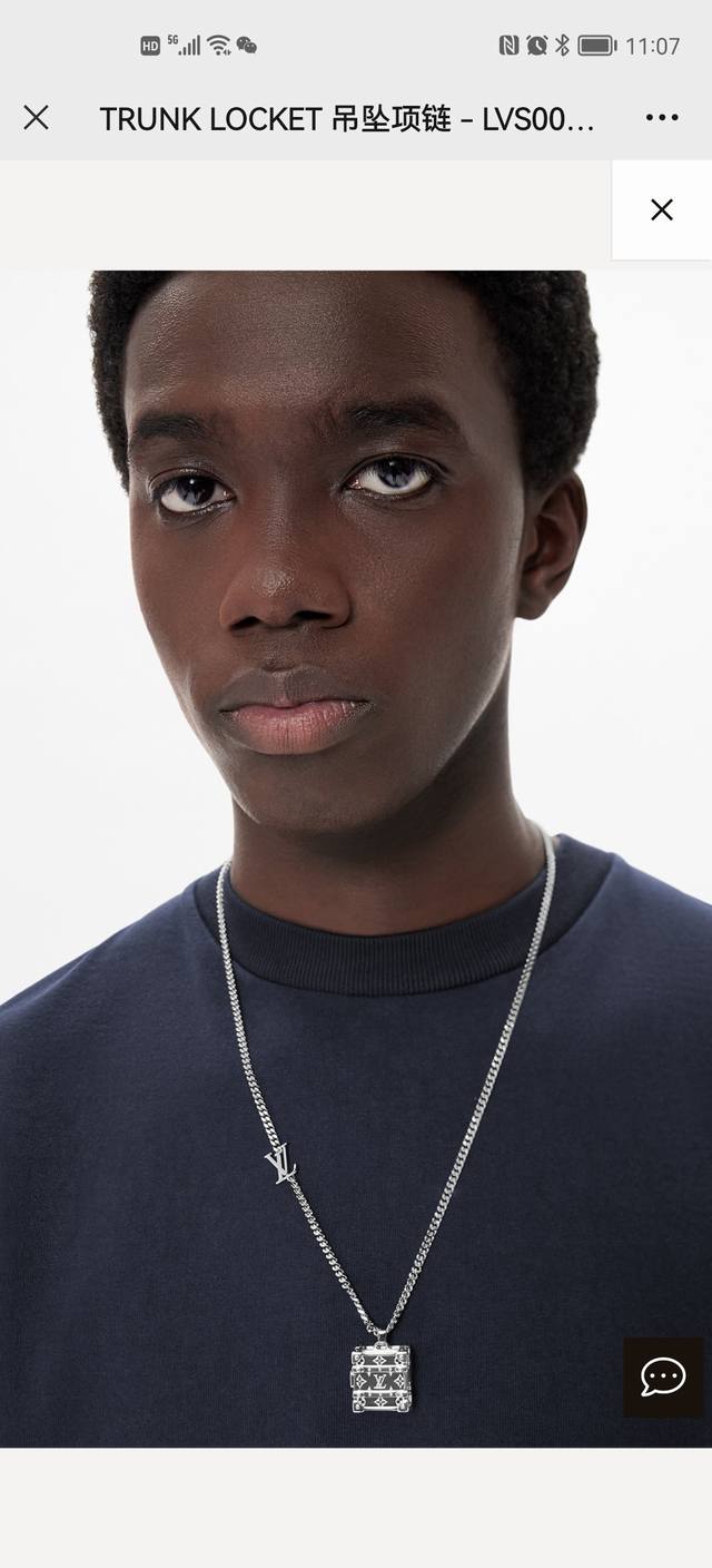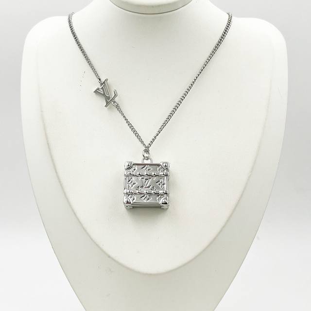 This Trunk Locket necklace from Louis Vuitton showcases the brand's boundless passion for exquisite travel trunks. The box pendant, a miniature replica of a classic trunk, is crafted with Monogram patterns and studs to highlight its superior workmanship. The adjustable chain, adorned with the letter "LV," adds a touch of brand sophistication.