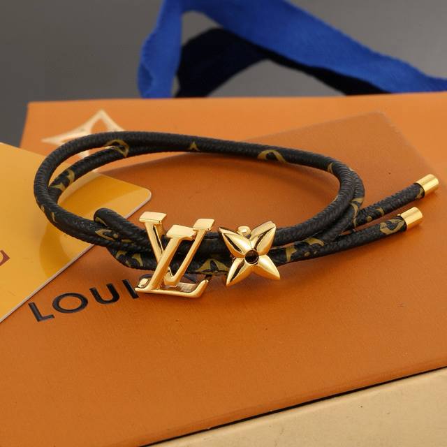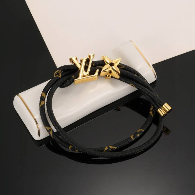 Unisex Louis Vuitton Circle Reversible Bracelet, featuring the iconic monogram canvas and gold-tone metal studs, pays homage to Louis Vuitton's history. The smooth, refined calfskin and metal buckle create a polished look. (