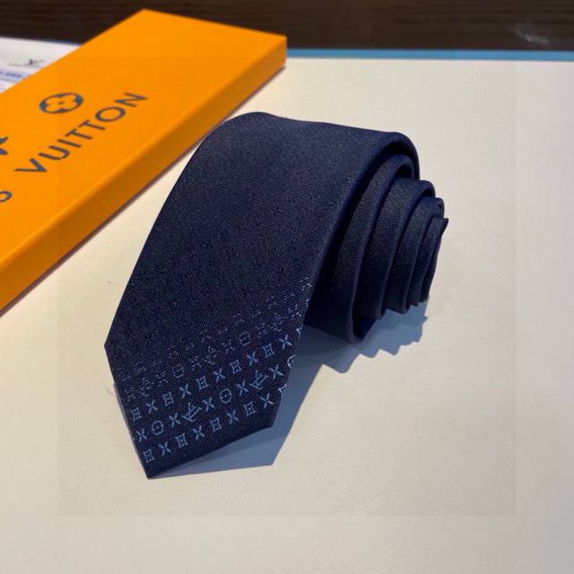 LV letter gradient tie, a classic Louis Vuitton tie, a must-have for men, super stylish! High-end quality, the cut and fabric meet brand standards. A rare find, flattering on all body types, exuding a high-end feel, looking incredibly handsome no matter how you wear it. Highly recommended for its exquisite 7cm design, perfect width, and versatile color. 148*7cm, 100% top-grade jacquard silk, handmade custom-made.