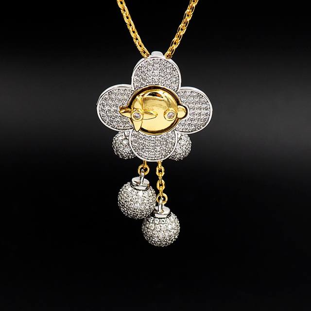 LV's Vvienne Doll Collection reimagines Louis Vuitton's iconic mascot as a whimsical work of art. This necklace features pav