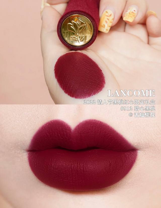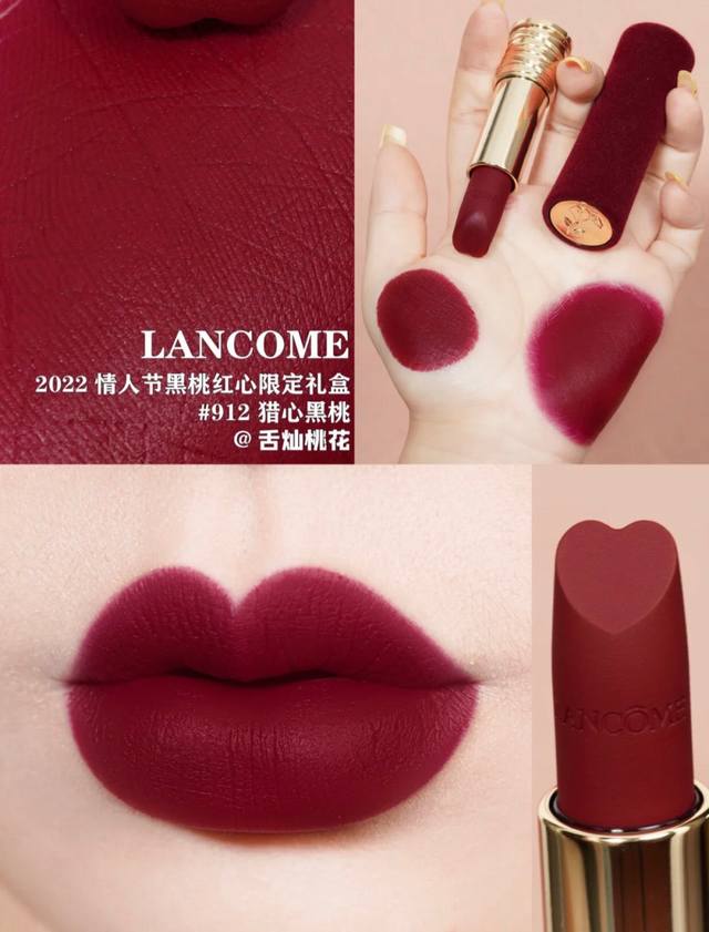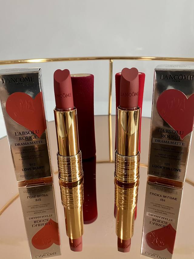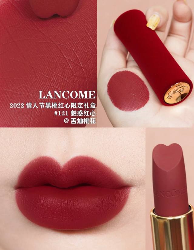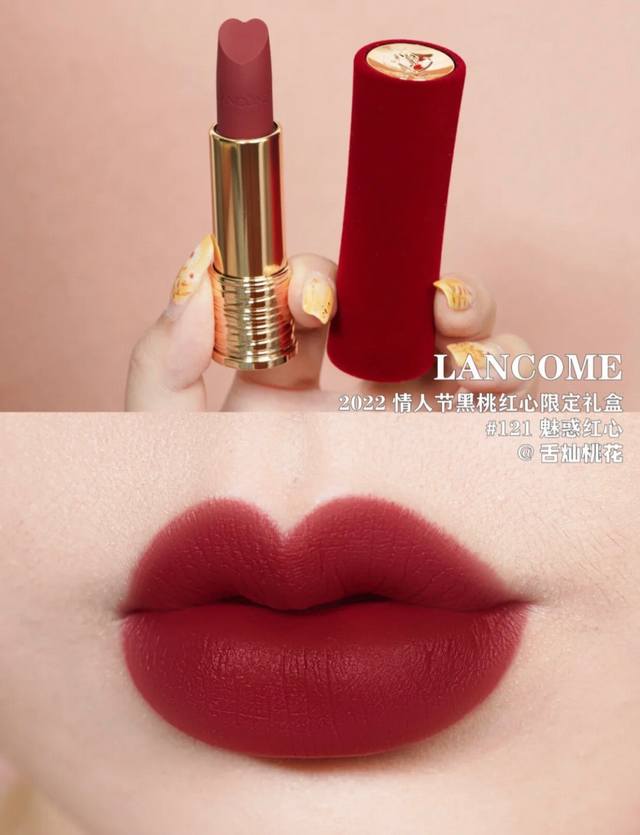 Lanc?me Valentine's Day Velvet Limited Edition Lipstick #121 Alluring Red Heart #912 Heart-Hunting Spade. The red velvet buckle paired with the heart-shaped lipstick is so clever! The shades are like a heartfelt confession of love: 121 - I want to love you, 912 - I just love you. This is the Valentine's Day gift every girl wants! 121 - a warm red currant that's so flattering, even those with yellow undertones will look beautiful! Those with darker lips can confidently wear it, it's also okay for the New Year! 912 - a retro berry red that's super elegant, rich yet youthful, and looks great with a coat.