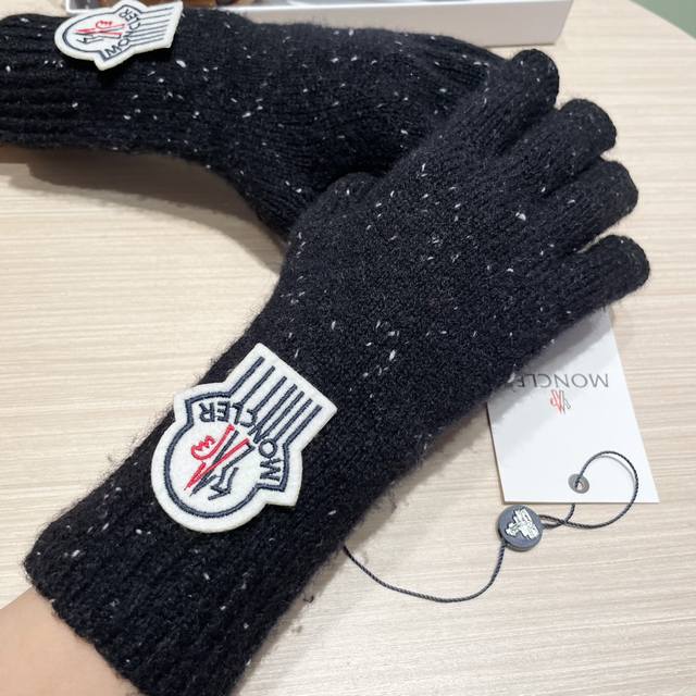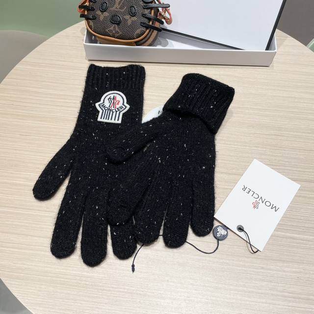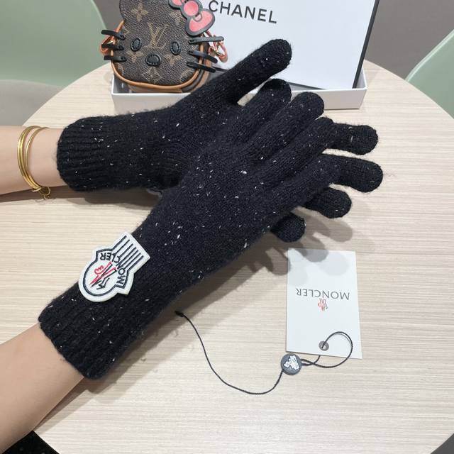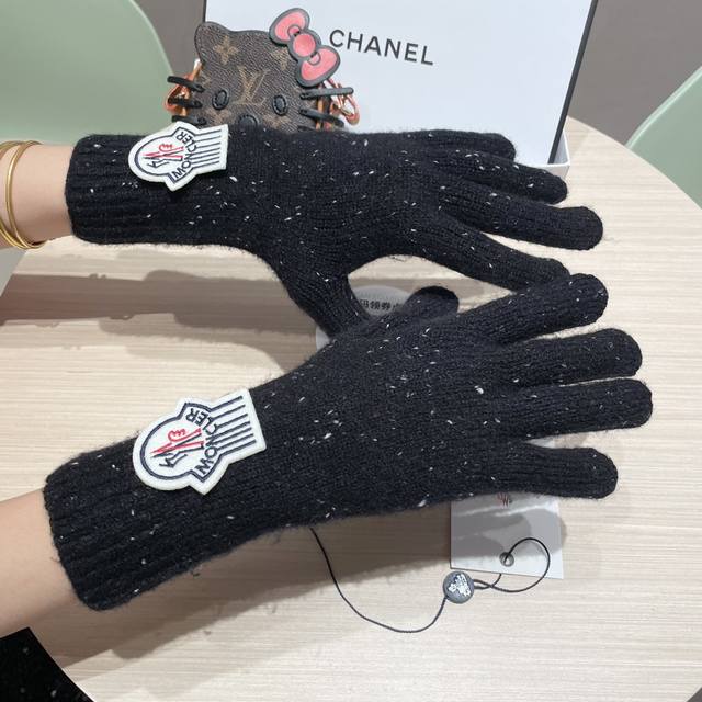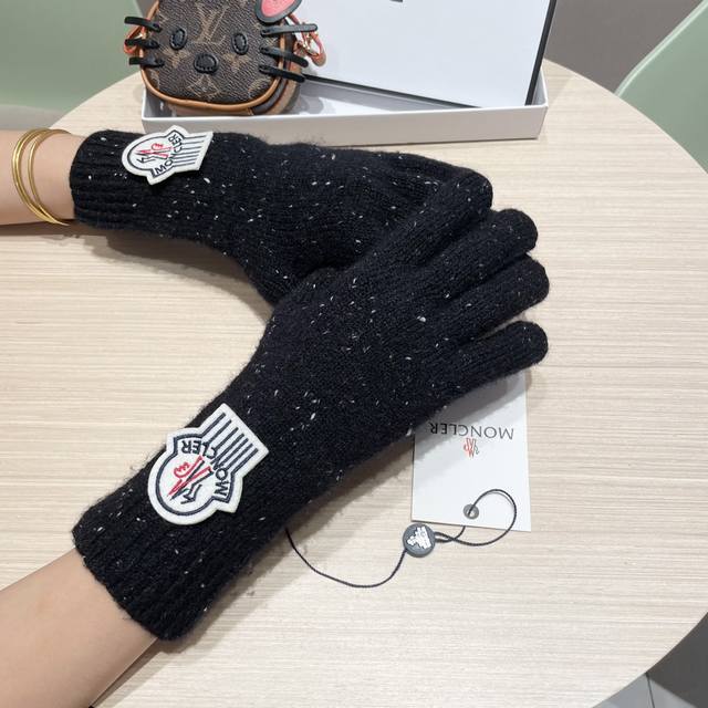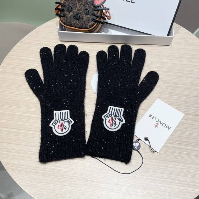 Moncler 2025 New Korean Style Versatile Fog Blue Knitted Gloves Women's Autumn a