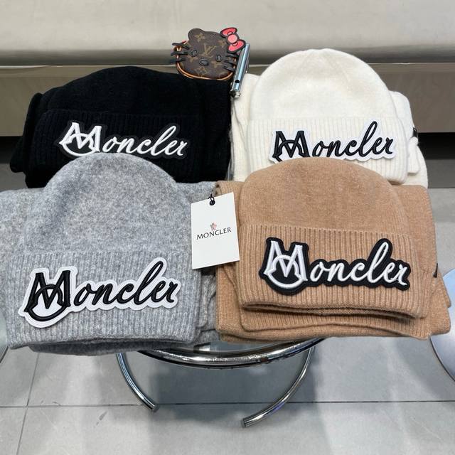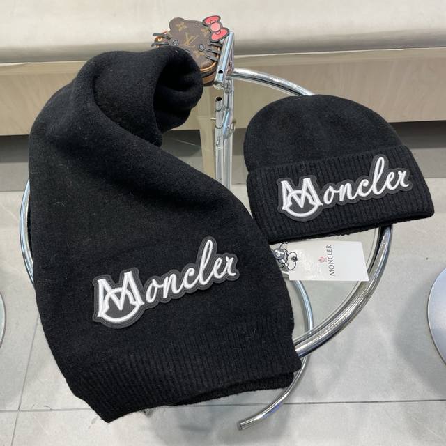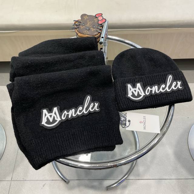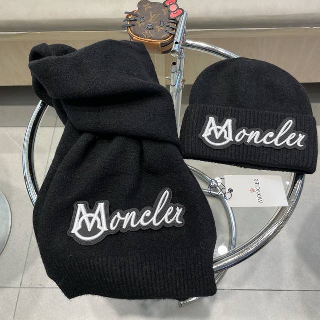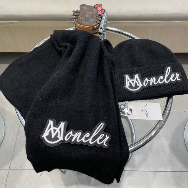 Moncler 2-piece set, new style, scarf, hat, and gloves. 70% cashmere and 30% ra