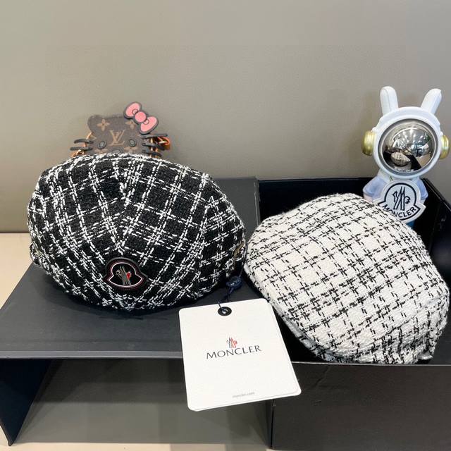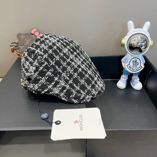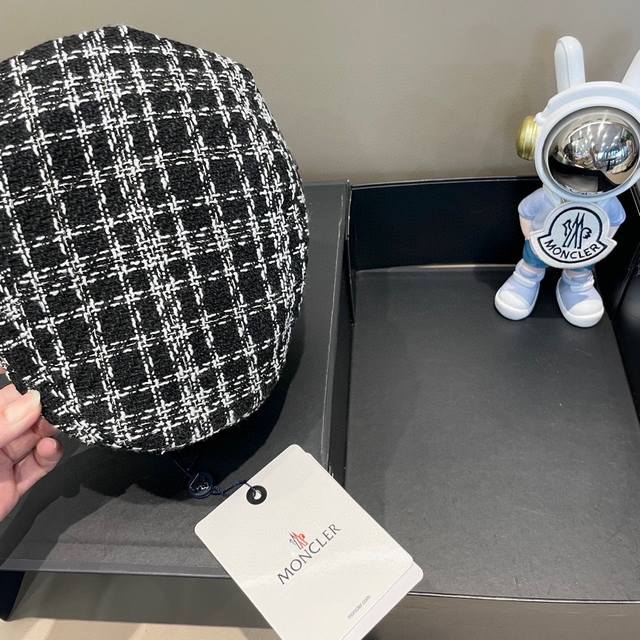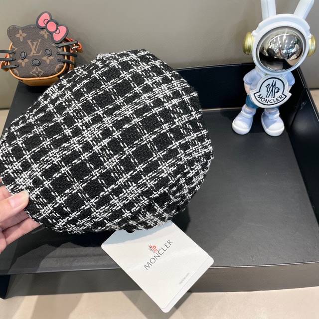 Moncler autumn and winter plaid cap Japanese style all-match retro forward cap black and white plaid tweed beret female