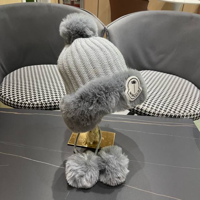 Moncler Autumn/Winter Cute Furry Hat with Ear Covers, Outdoor Warm Ear Cover, He