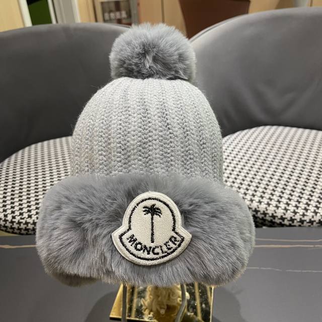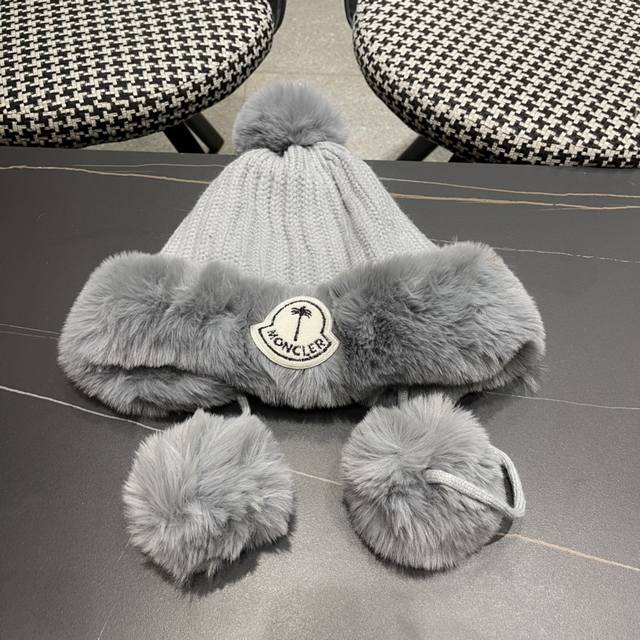 Moncler autumn and winter style fur ball ear plush hat for women outdoor plus ve