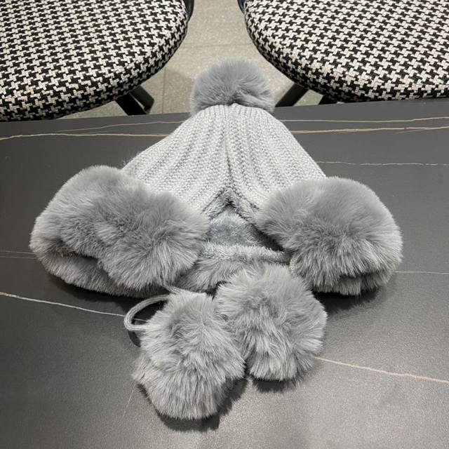 / Moncler autumn and winter style fur ball ear plush hat for women outdoor plus ve
