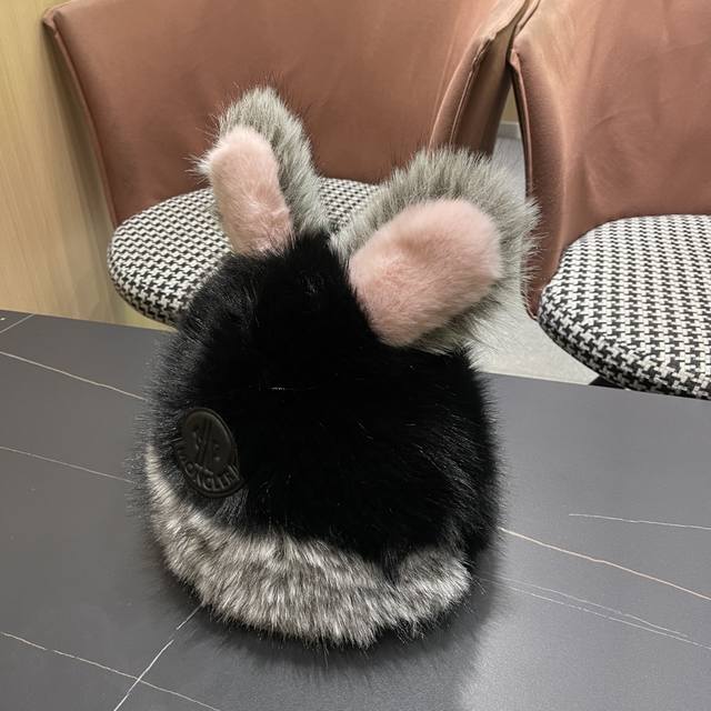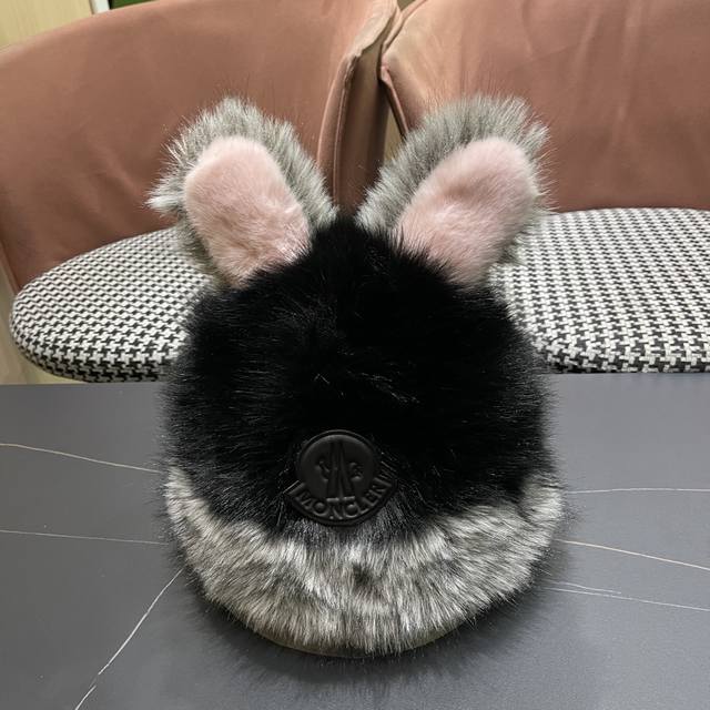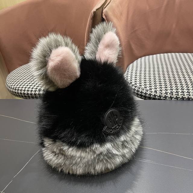 Moncler Autumn/Winter Cute Furry Hat with Ear Covers, Outdoor Warm Ear Cover, Headband, Fleece Lined Thick Hat (