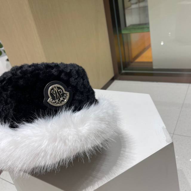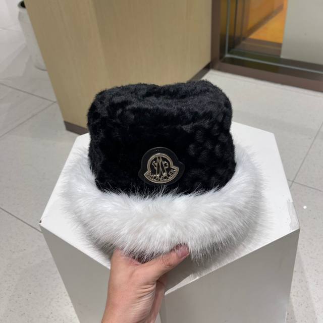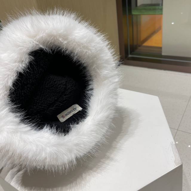 Moncler Autumn/Winter Fur Hat for Women, Rabbit Earflap Sweet Fisherman Hat, Warm and Fluffy Bucket Hat, Makes Your Face Look Smaller (