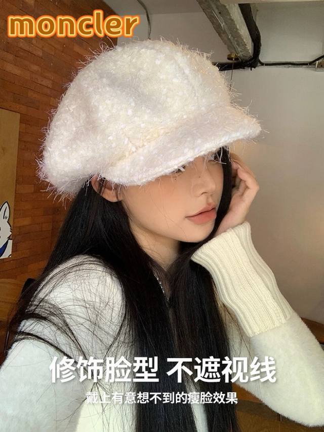 Moncler beret women's autumn and winter new Korean style wool painter beret hat with face small octagonal hat