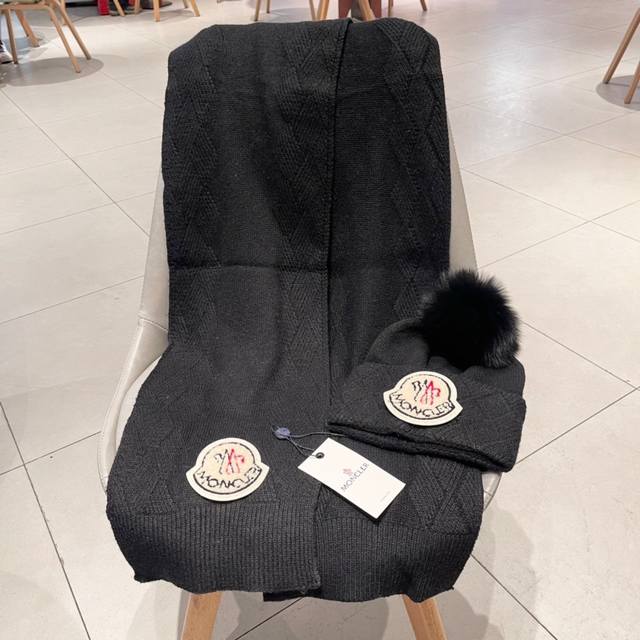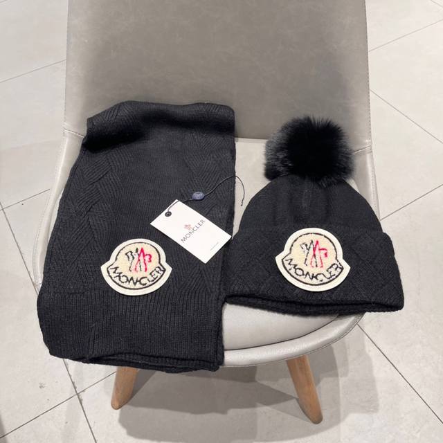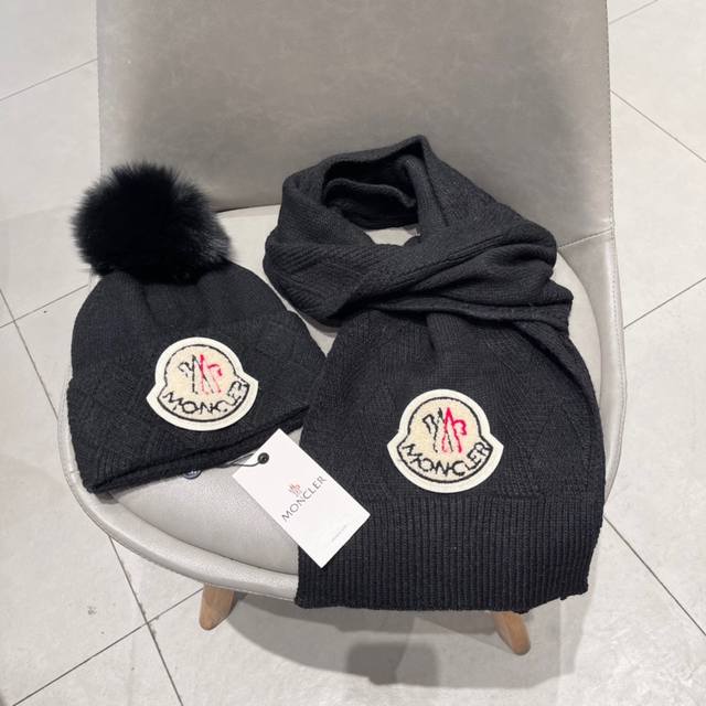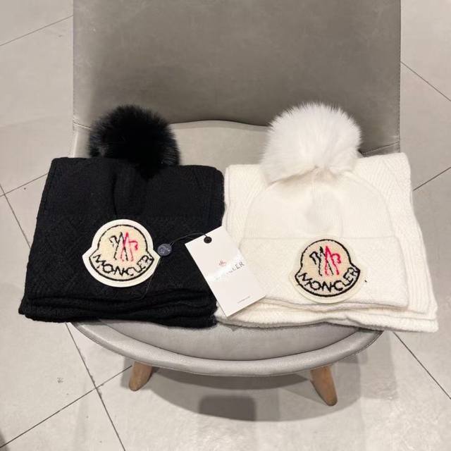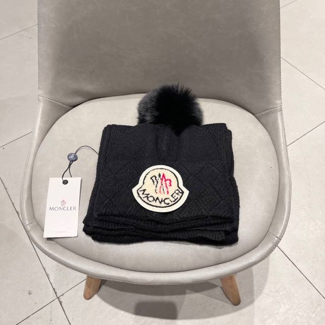 Moncler classic hat set! Hat and scarf! Cashmere and rabbit fur quality! Warm and super comfortable ~ Winter ladies look younger artifact ~ This winter, you need a hat set like this ~ Warm and stylish! Unisex style