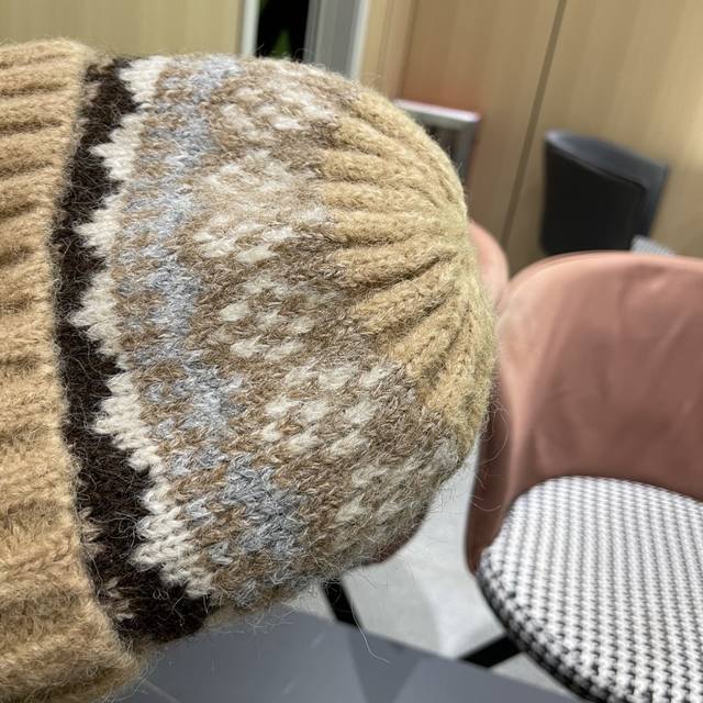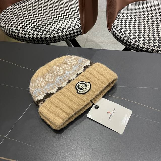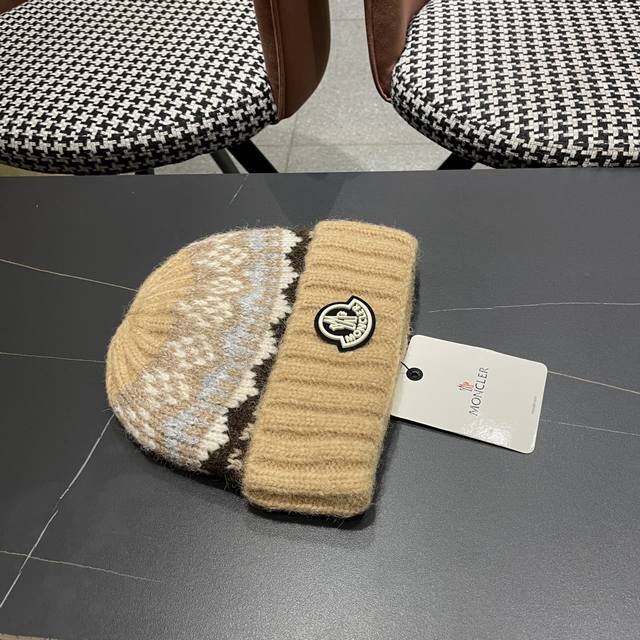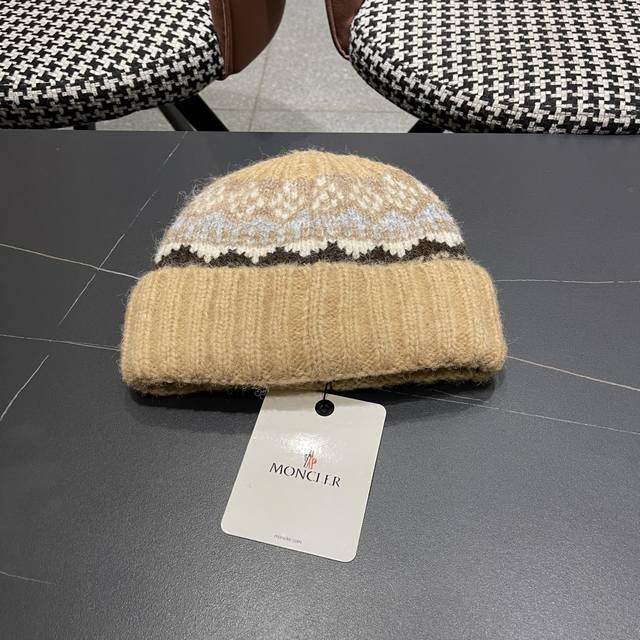 / Moncler Fair Isle Retro Knitted Hat for Women, Autumn/Winter Warm Jacquard Wool