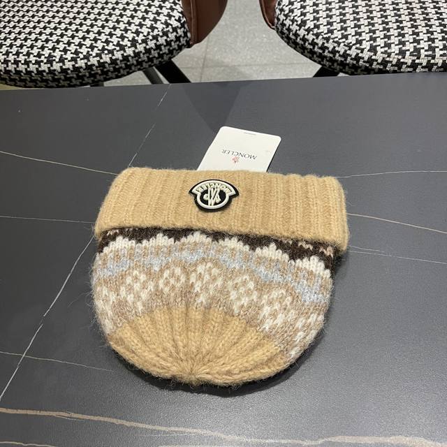 Moncler Fair Isle Retro Knitted Hat for Women, Autumn/Winter Warm Jacquard Wool Hat, Korean Style, Versatile, Face-Slimming, Earmuff Headband
