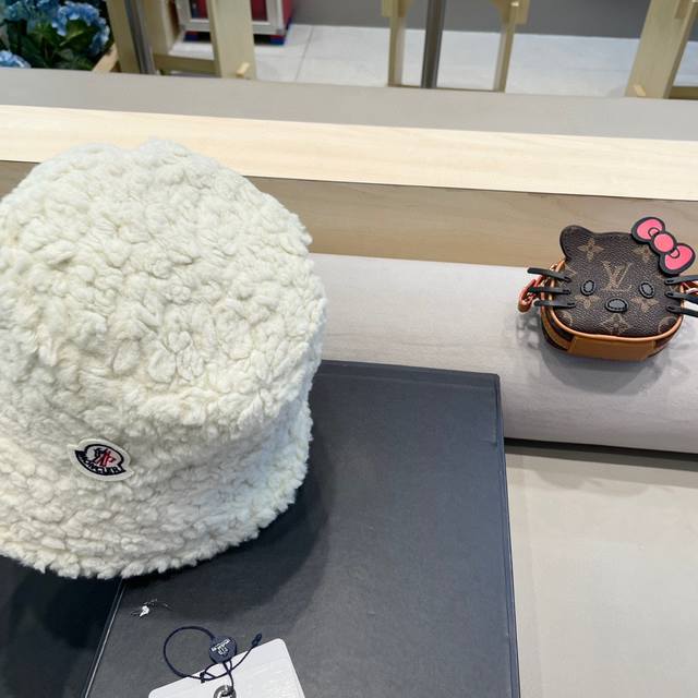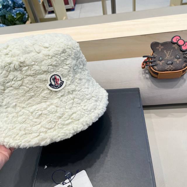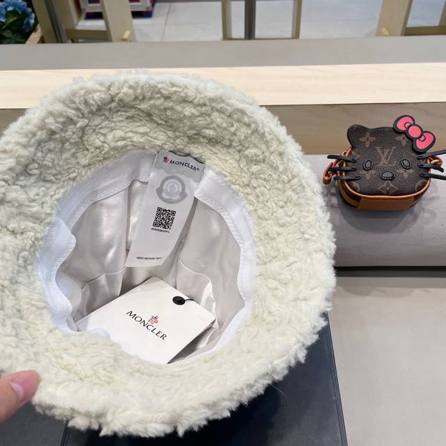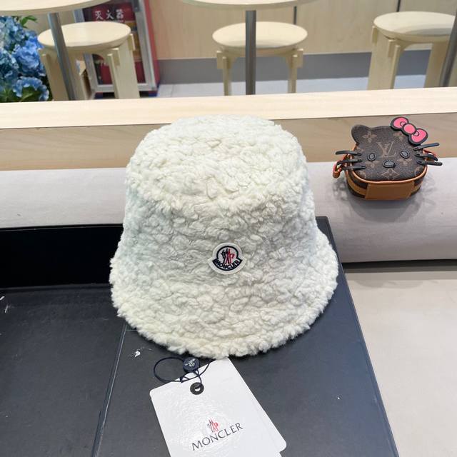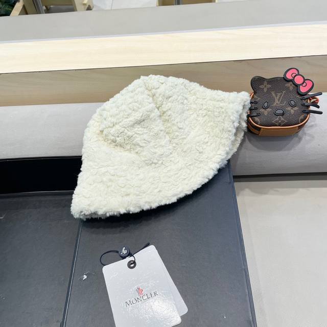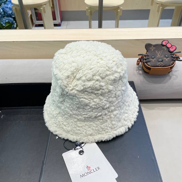 Moncler fisherman hat women's autumn and winter new solid color warm cold wind face small travel white plush basin hat