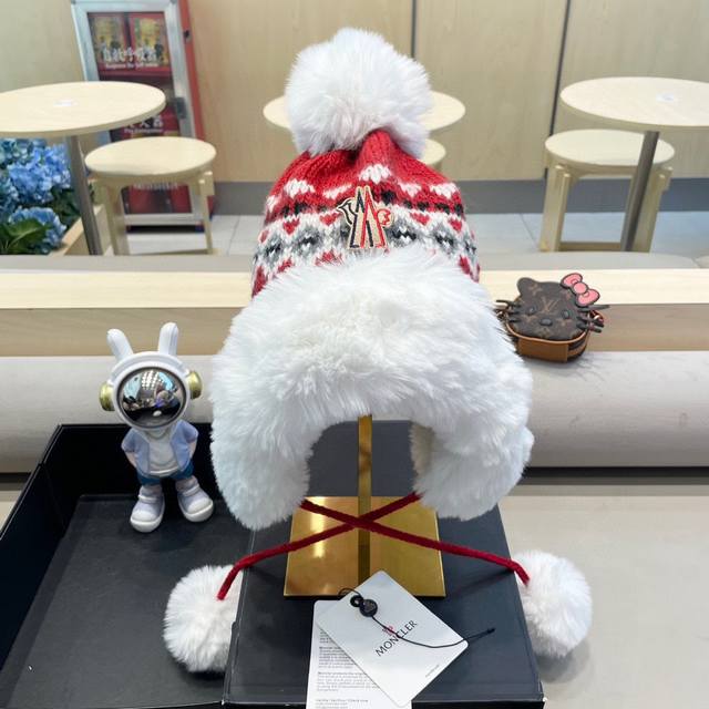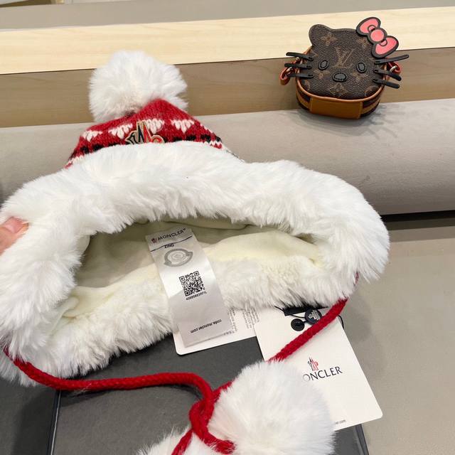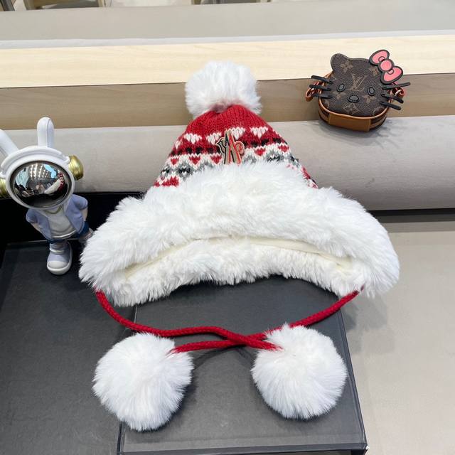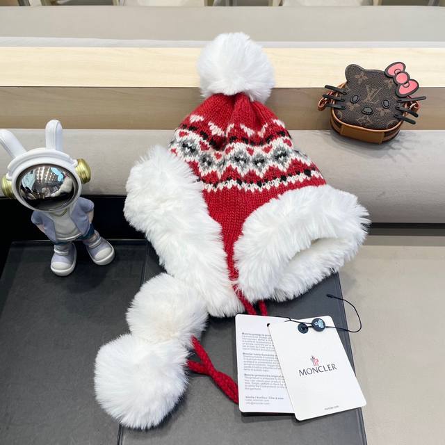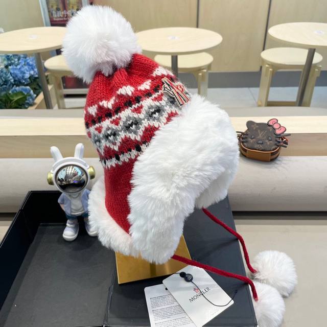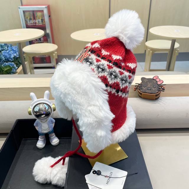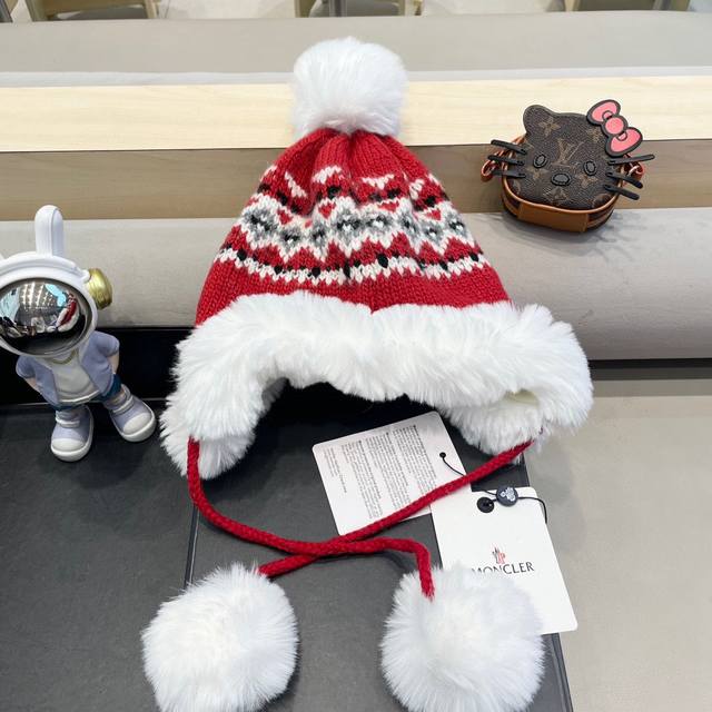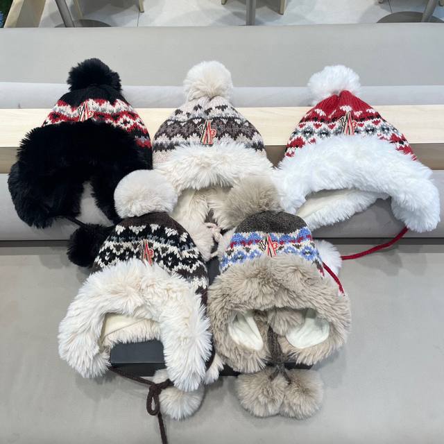 Moncler2025 new jacquard wool hat for women autumn and winter warm 100% wool ear
