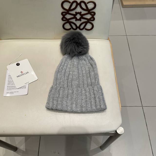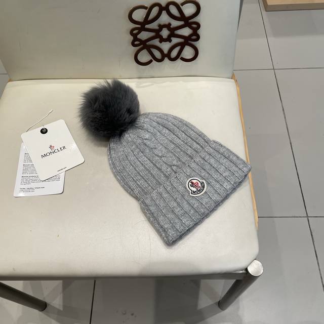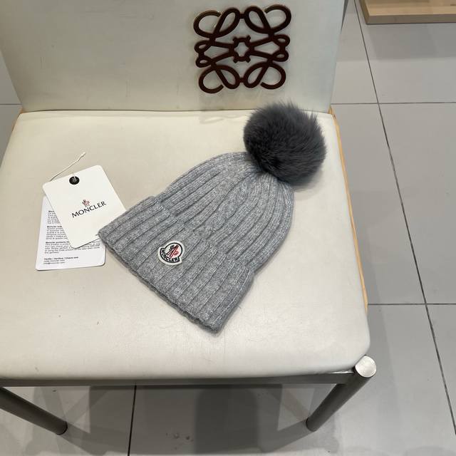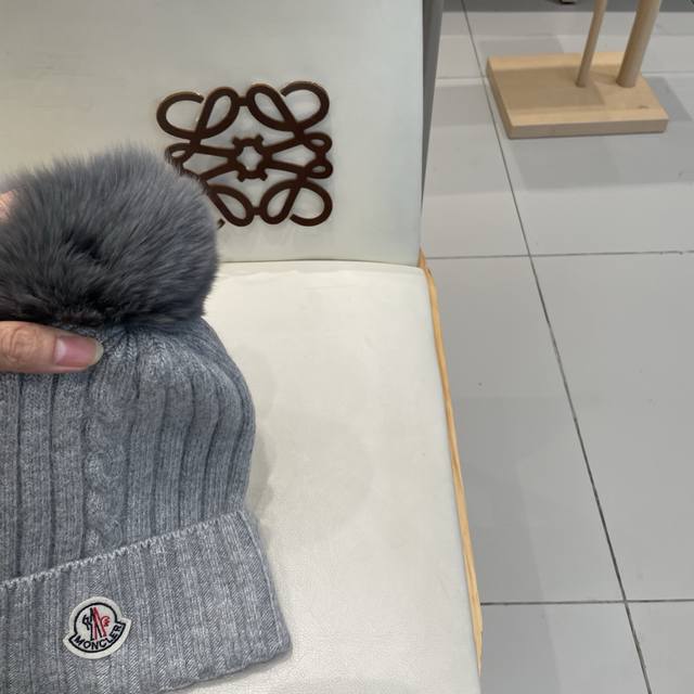 Moncler High-Quality Fox Fur Pom-Pom Knitted Rabbit Wool Beanie